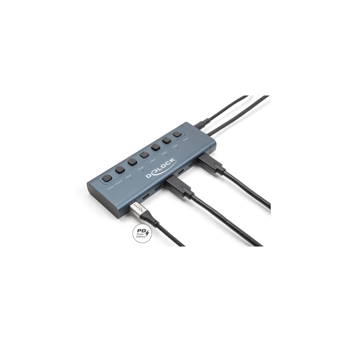 Delock USB 5 Gbps Hub with 7 USB Type-C™ Port with switch thereof 6 x Data Port + 1 x Data and PD 20 Watt
