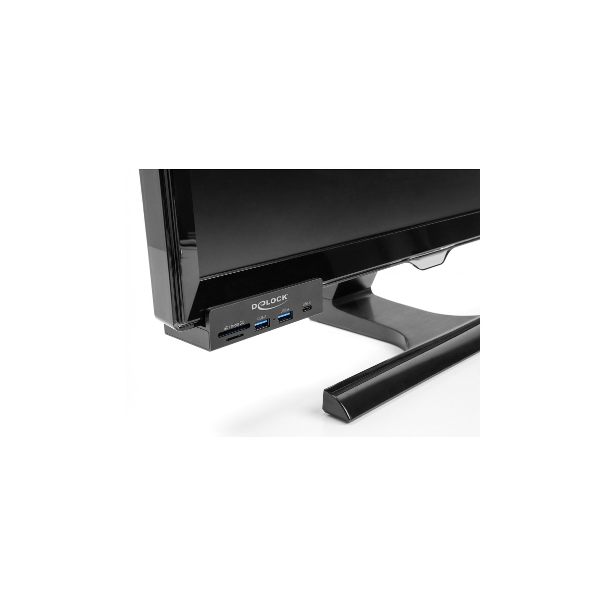 Due to the included USB cable and the locking screw, this Delock hub is particularly suitable for easy mounting on a monitor or desk. This means that the hub is always at the same location. In addition, the USB devices can be plugged in with one hand, the hub does not have to be held additionally.
