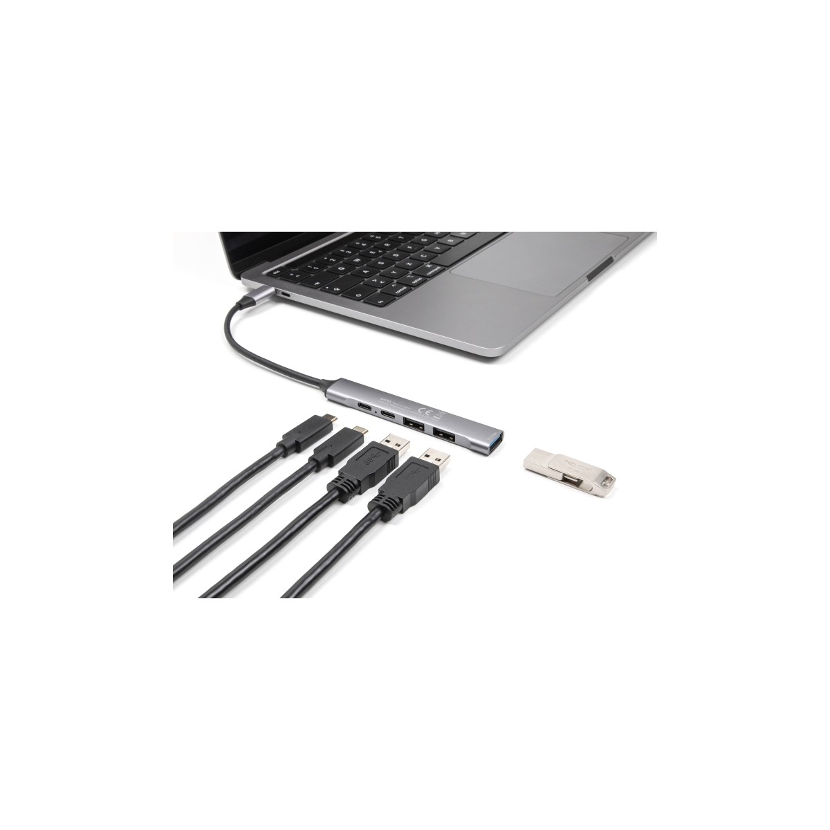 Due to its small dimensions and its sturdy housing, this Delock hub is particularly suitable for travelling. It can simply be packed into the bag together with the laptop or tablet and used as needed.