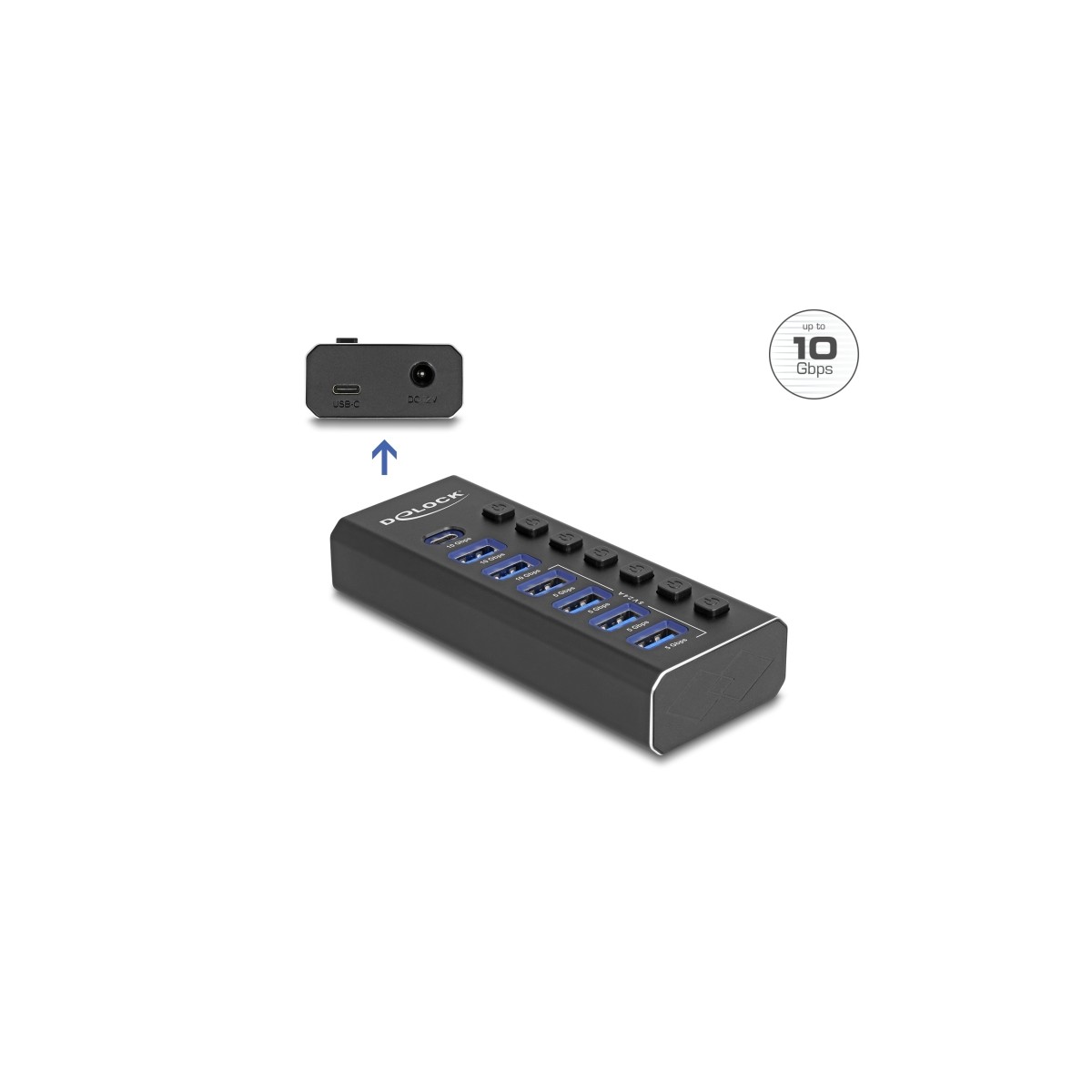 Delock 7 Port USB Hub with 4 Ports 10 Gbps and 4 Fast Charging Ports with Switch and Illumination