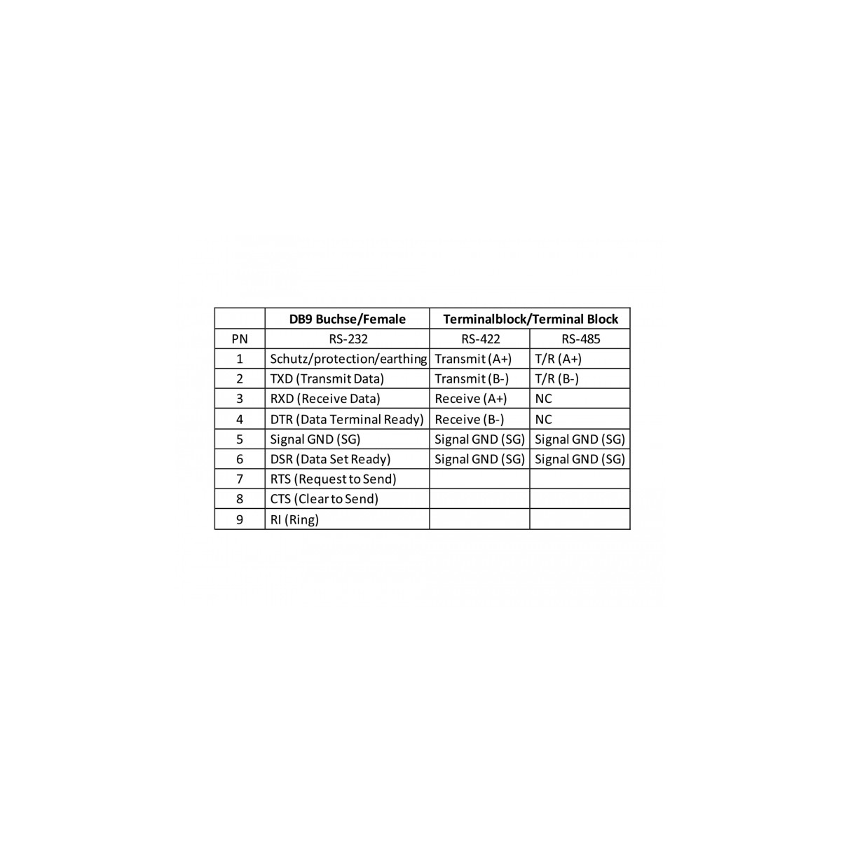 This RS-232 to RS-422/485 converter by Delock is suitable for all serial devices, e.g. on machine controls, fieldbus systems, measuring instruments, computers, printers etc. The components are protected against surge power by the integrated protection circuits of the converter.