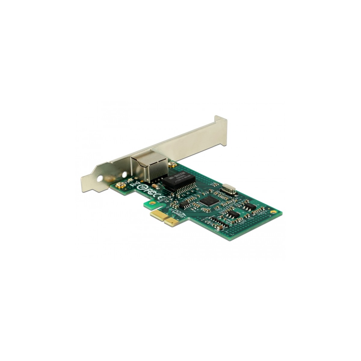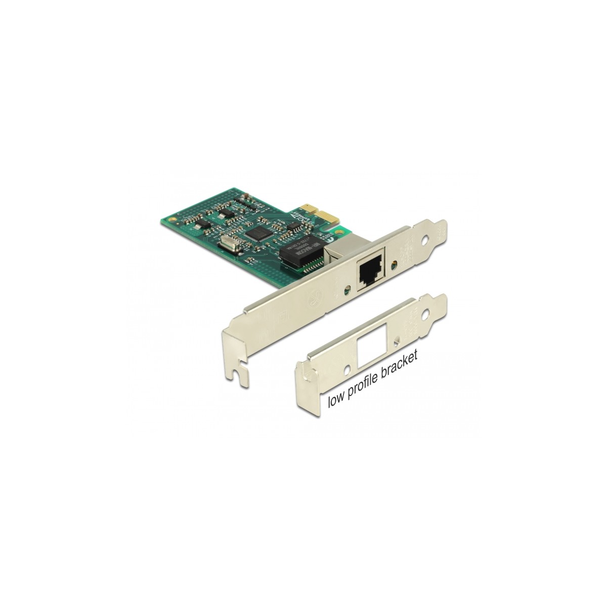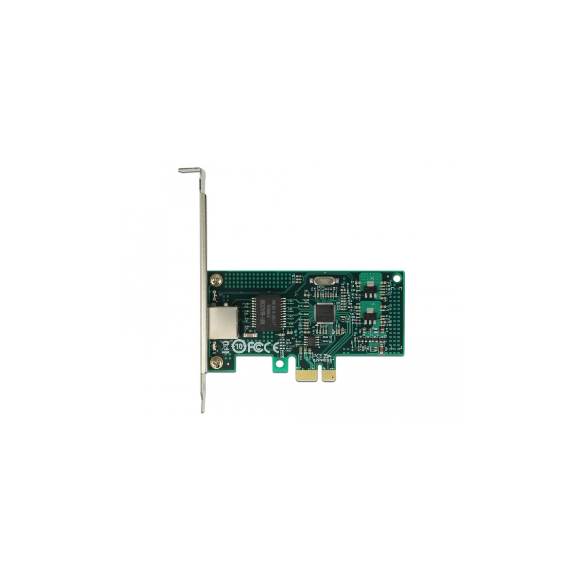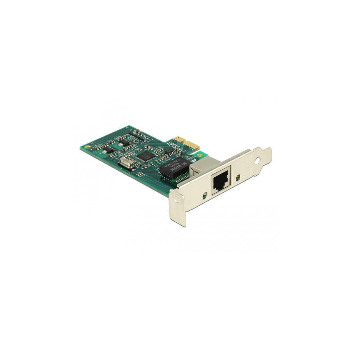 The PCI Express card by Delock offers one network port with a data transfer rate up to 1000 Mbps.