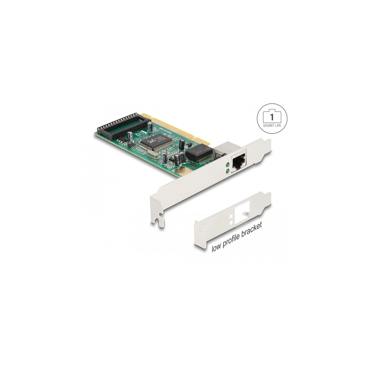 The PCI Gigabit LAN card by Delock offers one network port with a data transfer rate up to 1000 Mbps.