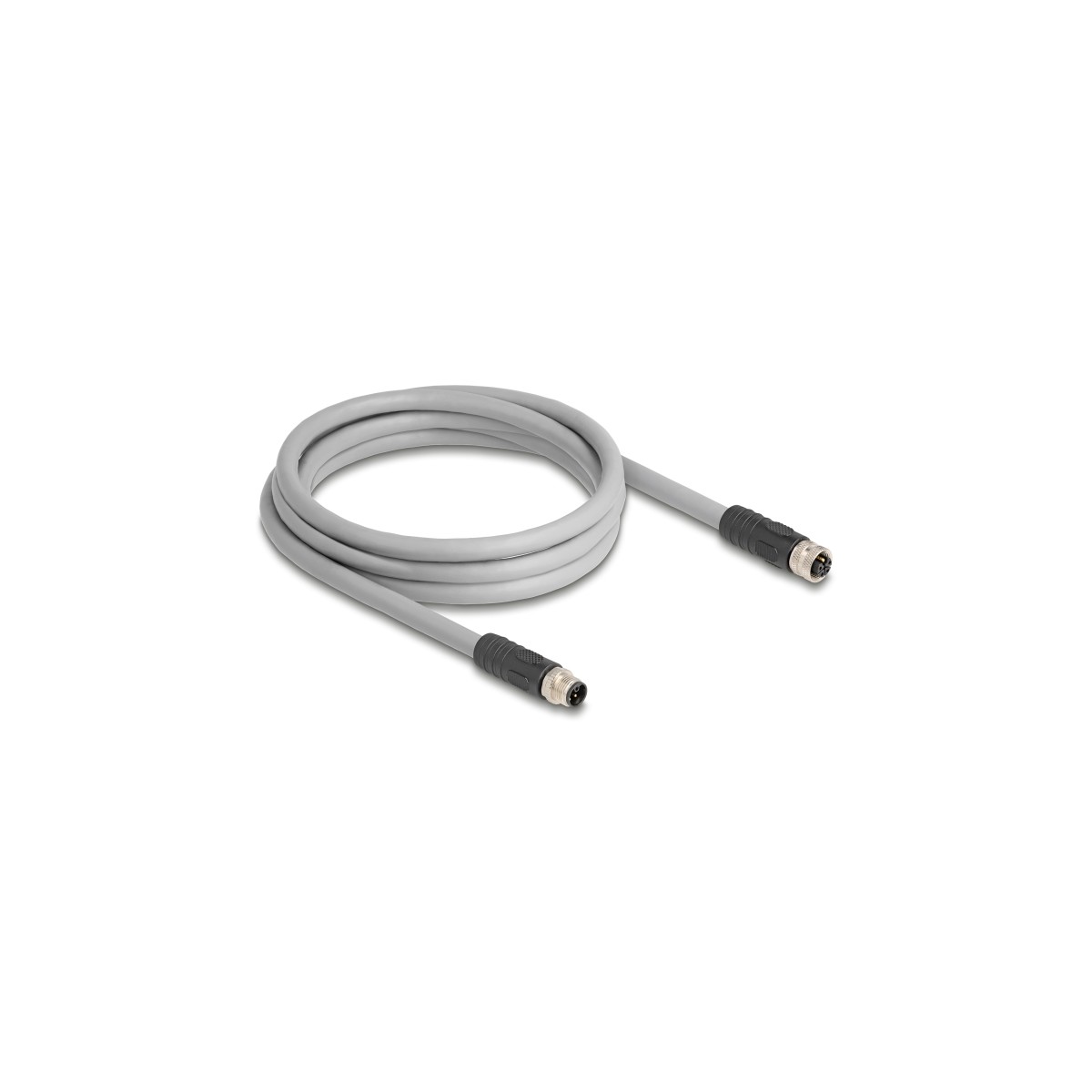 Delock M12 Cable L-coded 5 pin male to female PUR suitable for drag chains 2 m grey