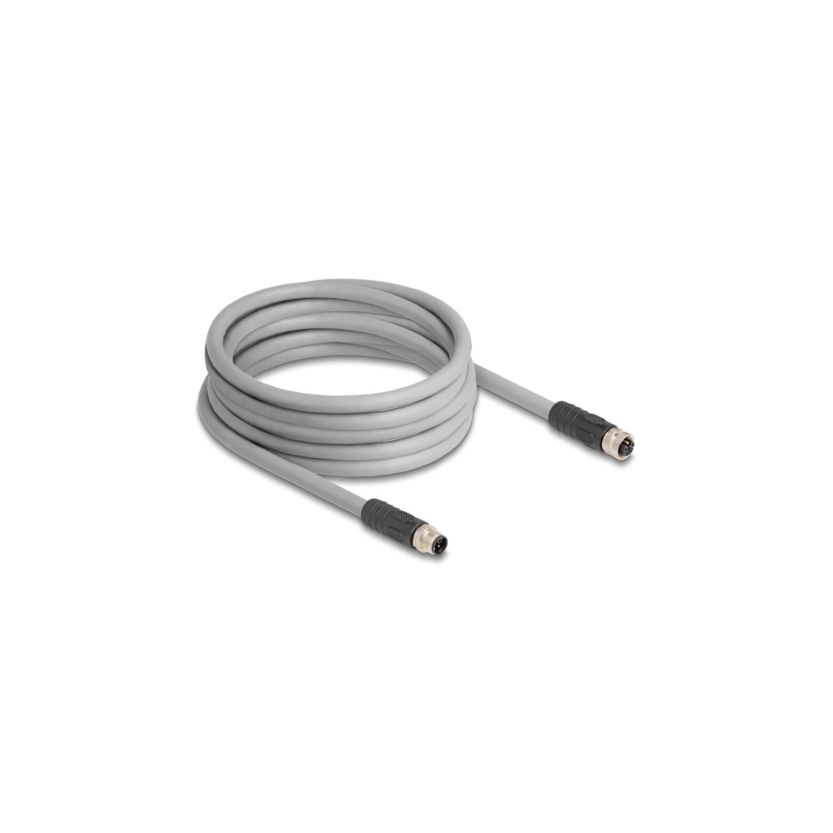 Delock M12 Cable L-coded 5 pin male to female PUR suitable for drag chains 5 m grey
