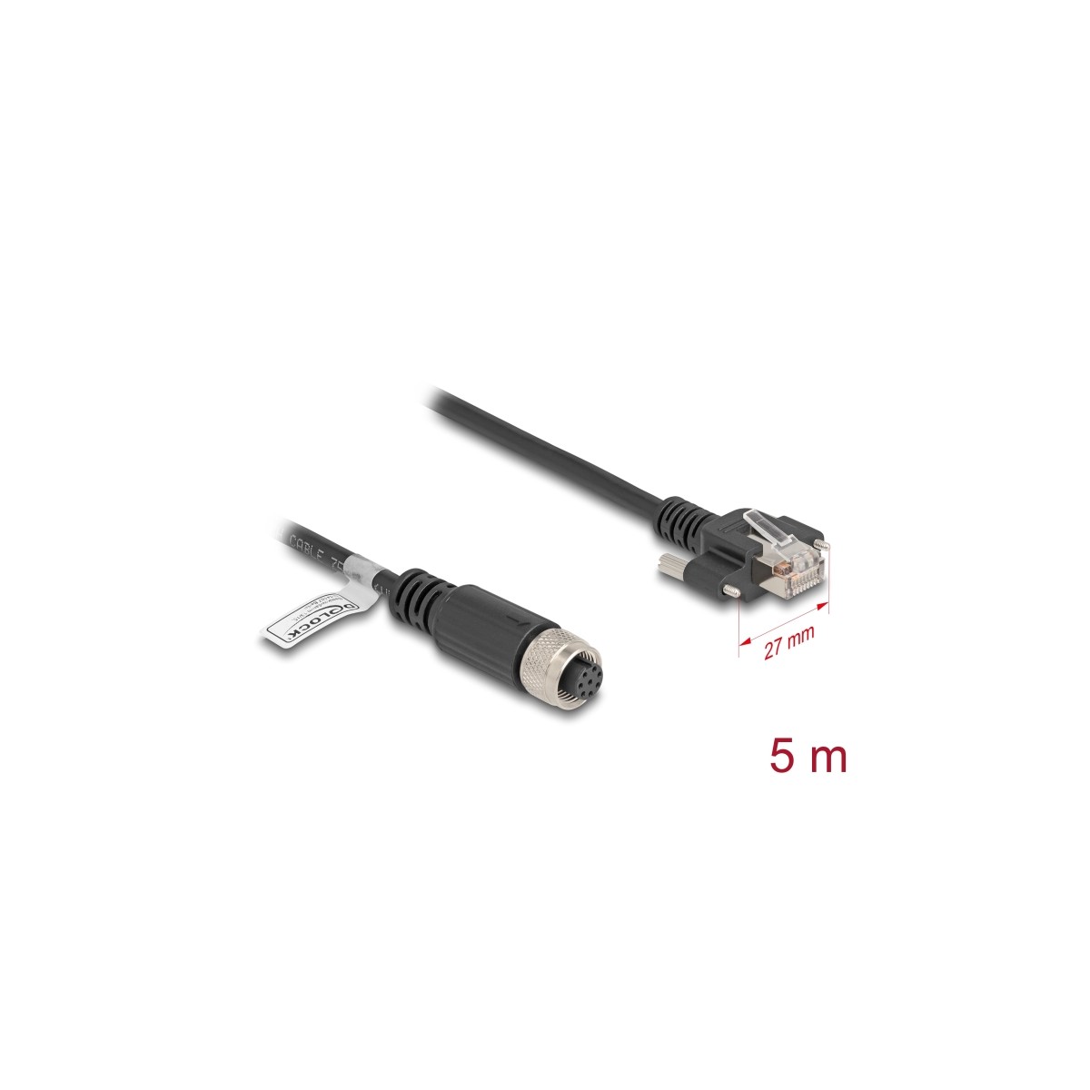 Delock M12 Cable A-coded 8 pin female to RJ45 plug with screws Cat.5e FTP 5 m black