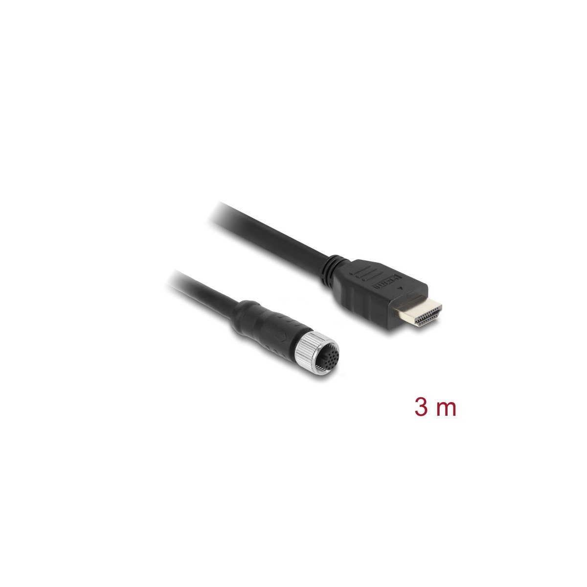 Delock M12 Cable A-coded 17 pin female to HDMI male 3 m black
