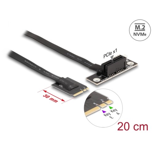 Delock M.2 Key A+E to PCIe x1 NVMe Adapter angled with 20 cm cable