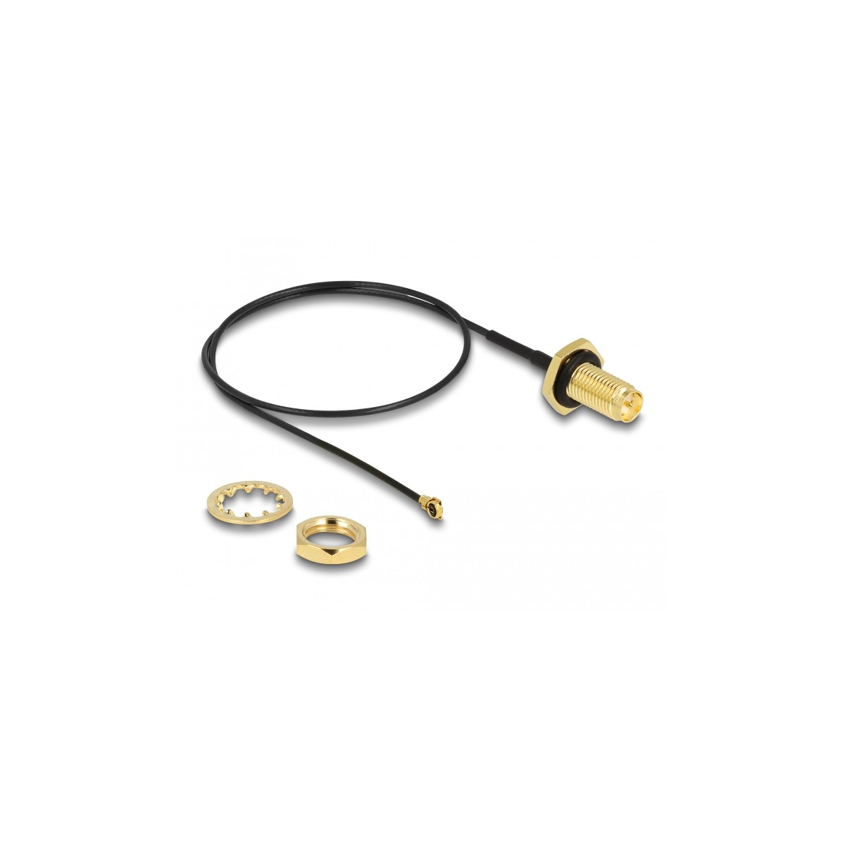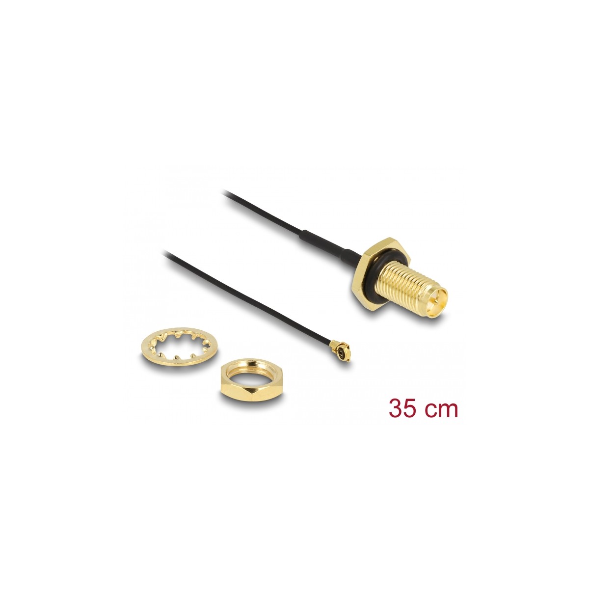 Delock Antenna Cable RP-SMA jack bulkhead to MHF® I plug 1.13 35 cm thread length 10 mm splash proof