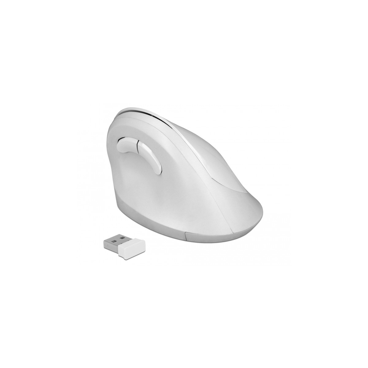 This wireless vertical mouse by Delock is suitable for right handers and will be connected to the computer via the compact USB receiver. During transport it can be placed inside a compartment at the bottom of the mouse. The 2.4 GHz wireless technology provides a maximum operating range of up to 20 meters. Due to its ergonomic design, the hand remains in upright position and does not have to be turned. Thus the mouse can be used preventive or with starting pain e.g. RSI (Repetitive-Strain-Injury). There are three adjustable DPI levels to adapt the sensitivity of the mouse.