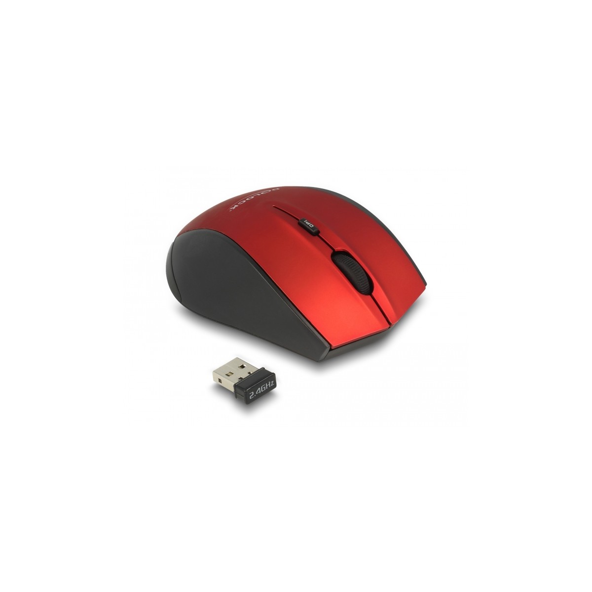 This wireless mouse by Delock is connected to the computer via the compact USB receiver. During transport it can be placed inside a compartment at the bottom of the mouse. The 2.4 GHz wireless technology provides a maximum operating range of up to 10 meters. There are three adjustable DPI levels to adapt the sensitivity of the mouse.