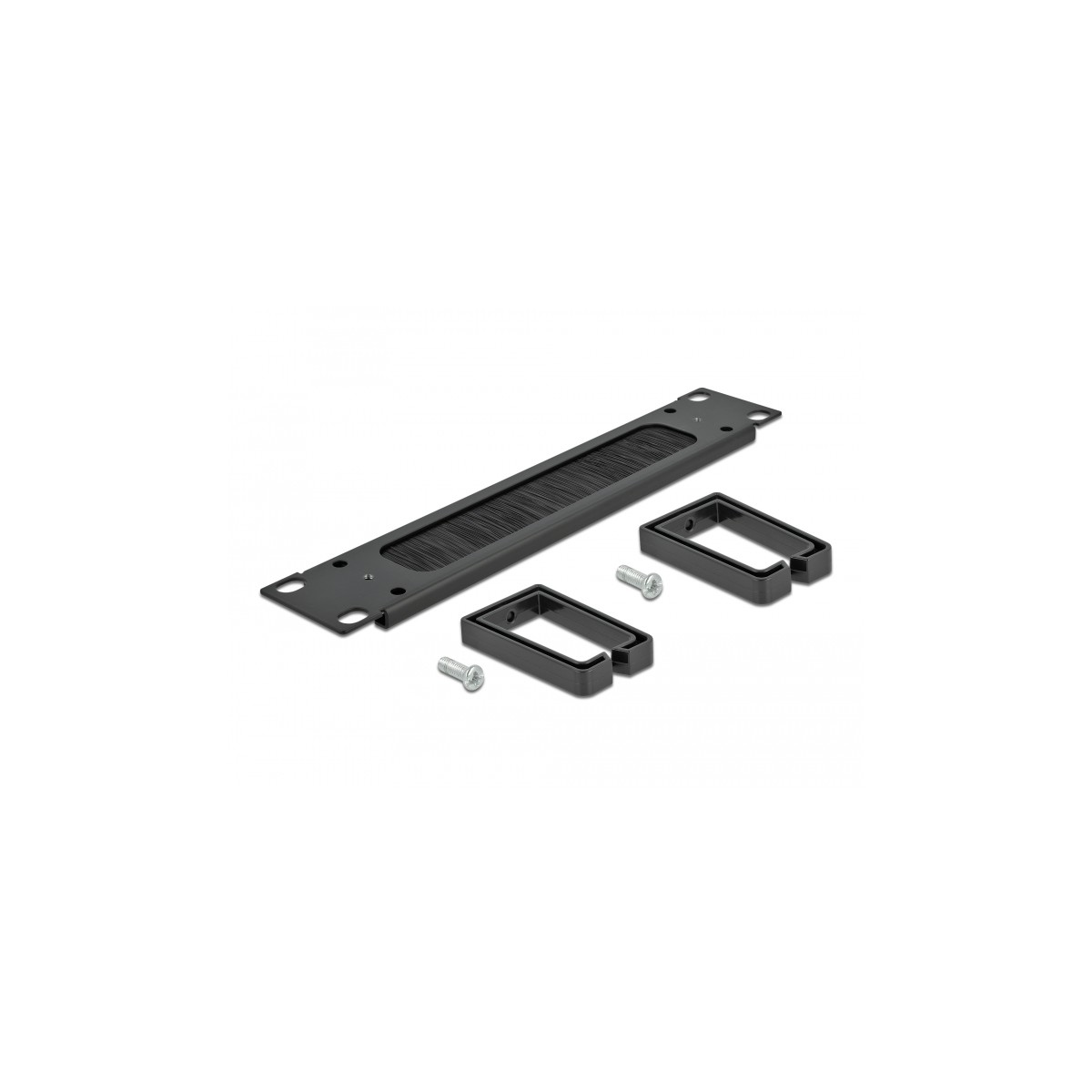 Delock 10″ Cable Management Brush Strip with 2 hooks 1U black