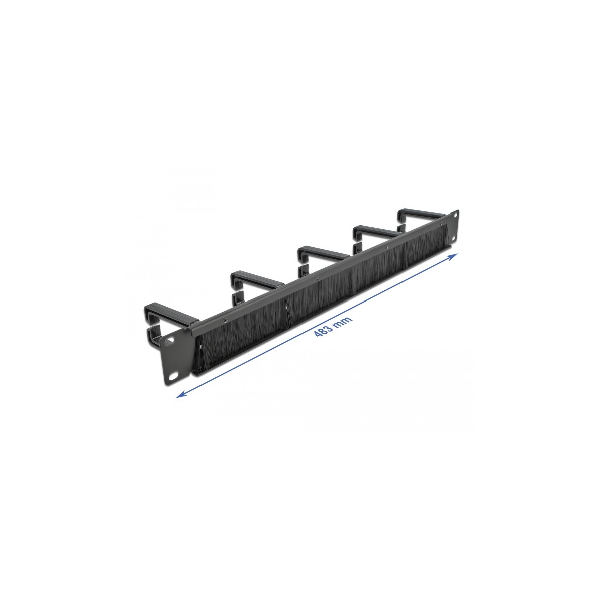 Delock 19″ Cable Management Brush Strip with 5 hooks 1U black