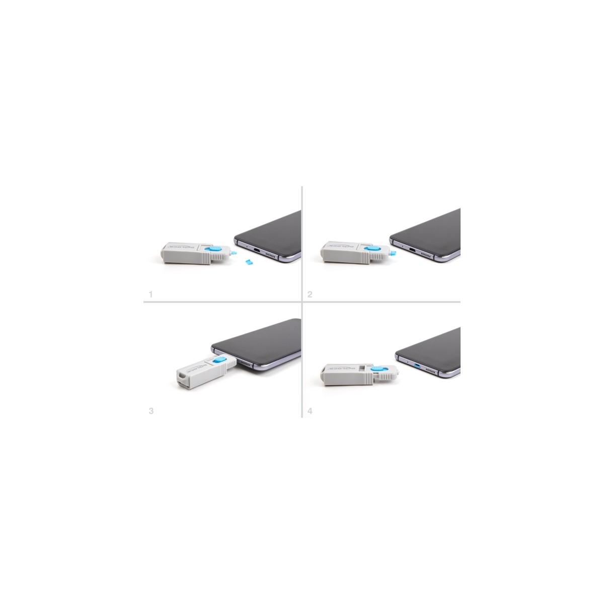 This port blocker set by Delock is an accessory for 20923. A total of 10 Micro USB ports can be blocked with the set. Access by cables or USB sticks to the port are then no longer possible.