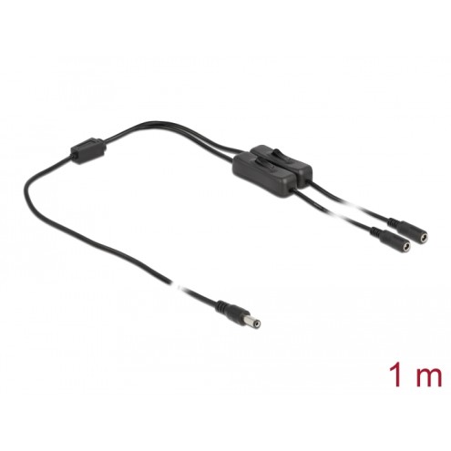 Delock Cable DC 5.5 x 2.1 mm male to 2 x DC female with switch 1 m