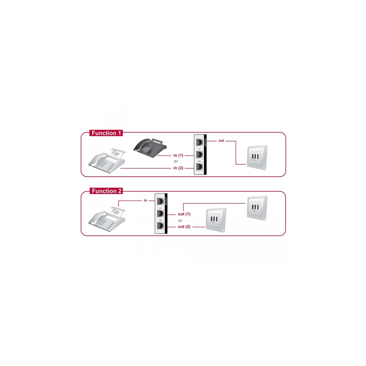 This RJ11 switch by Delock is a manually bidirectional switch for connecting different devices with RJ11 port. This switch offers two different applications.