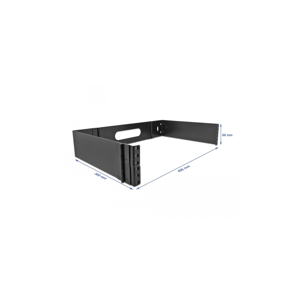 This rack by Delock can be used for wall mounting of 19″ devices e.g. for two patch panels with one height unit (U) and up to 30 cm depth. The one-sided hinge enables easy assembly.