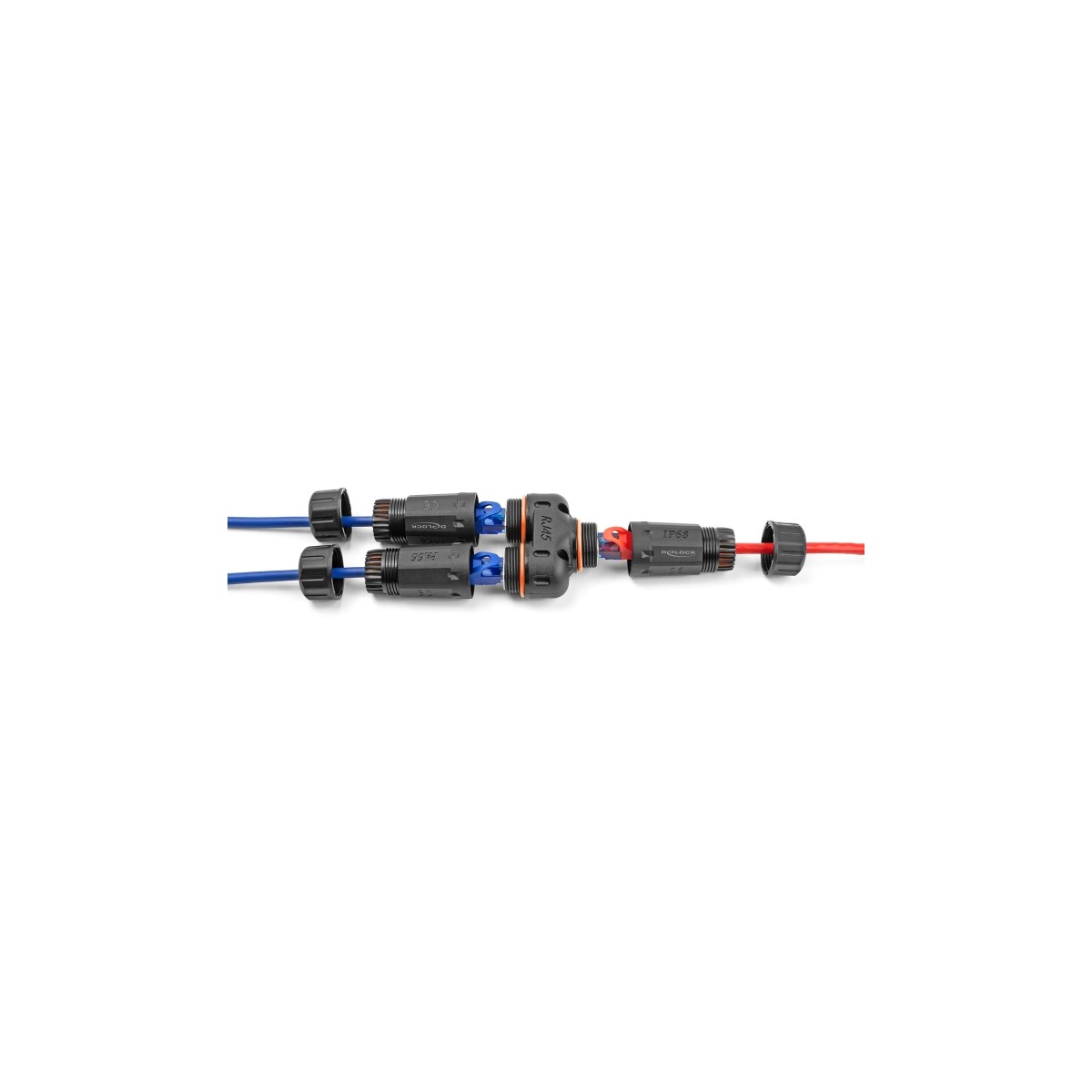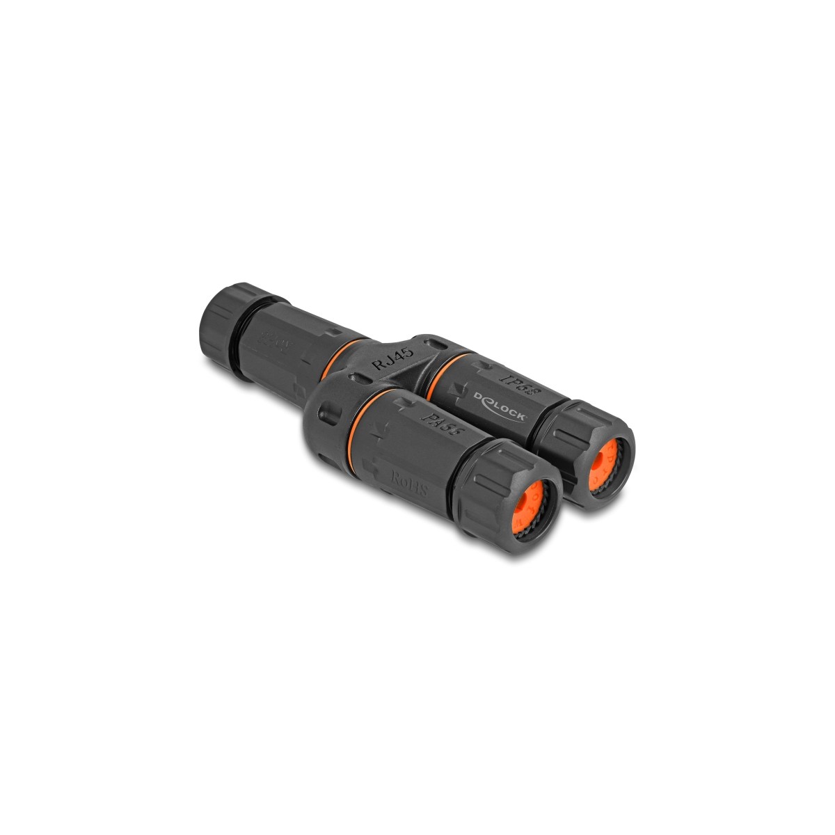 Delock Cable Connector Y-Adapter RJ45 jack to 2 x RJ45 jack Cat.6 IP68 dust and waterproof outdoor