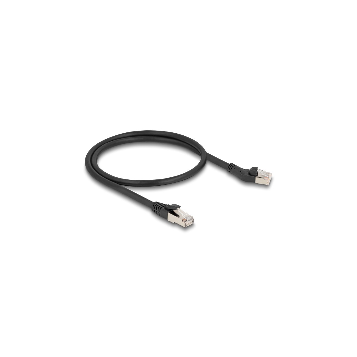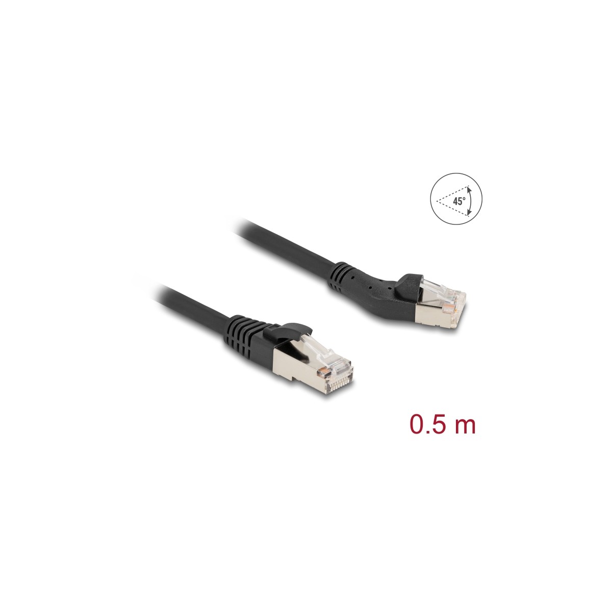 Delock RJ45 Network Cable Cat.8.1 S/FTP plug 45° left angled to plug straight up to 40 Gbps 0.5 m black