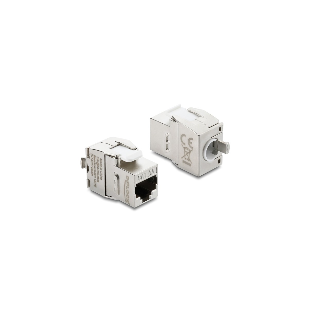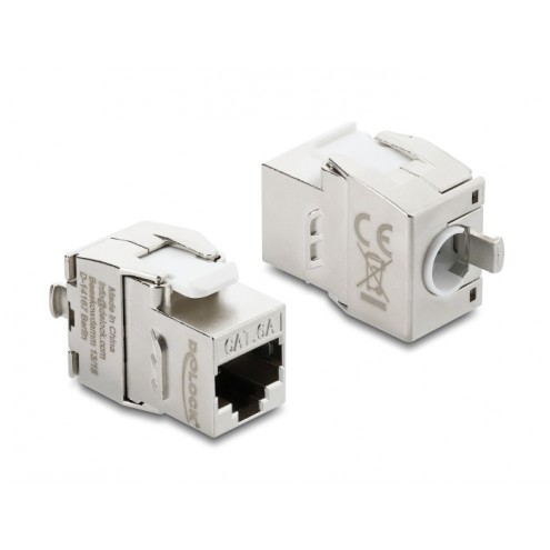 Delock Keystone Module RJ45 jack to LSA Cat.6A toolfree shielded metal silver / white