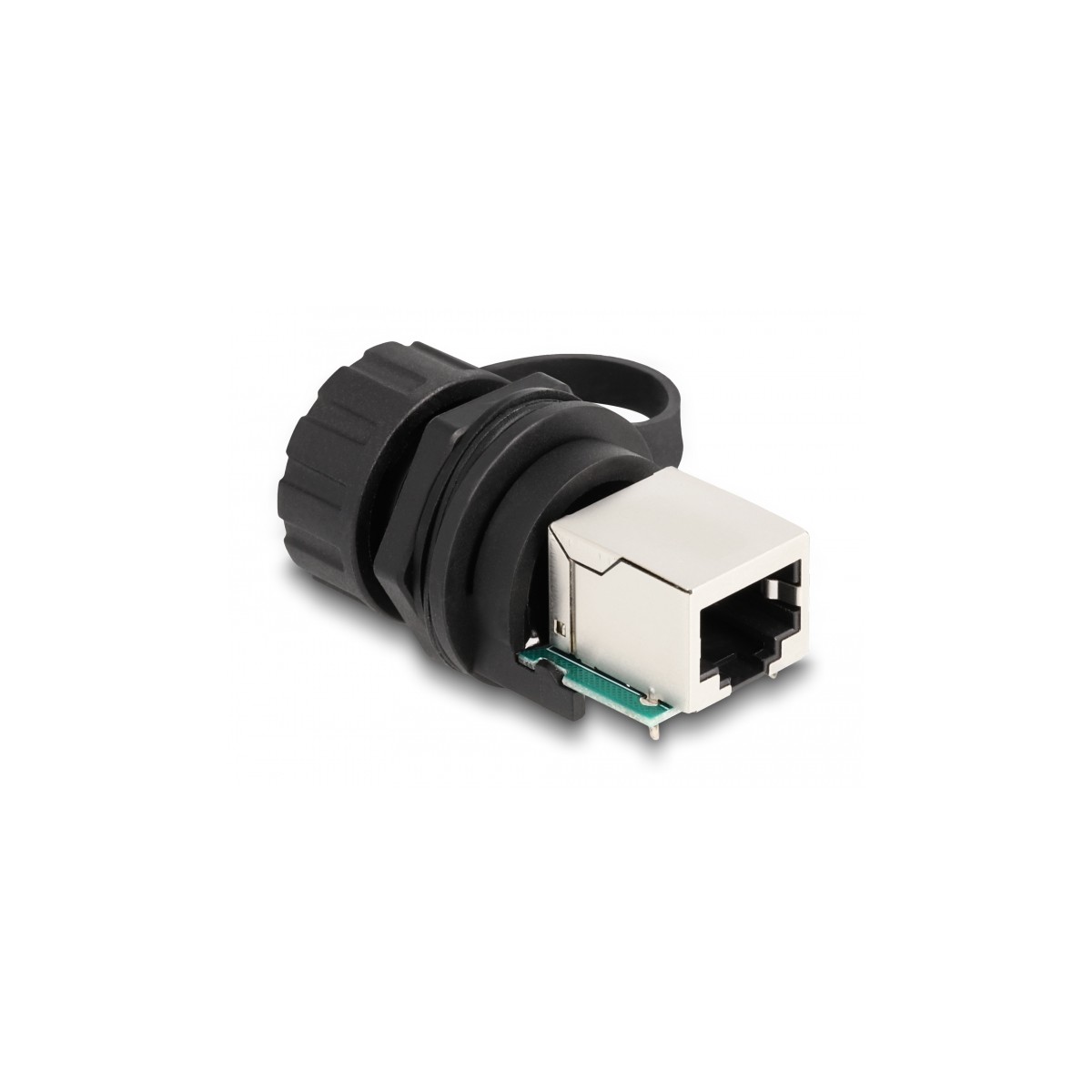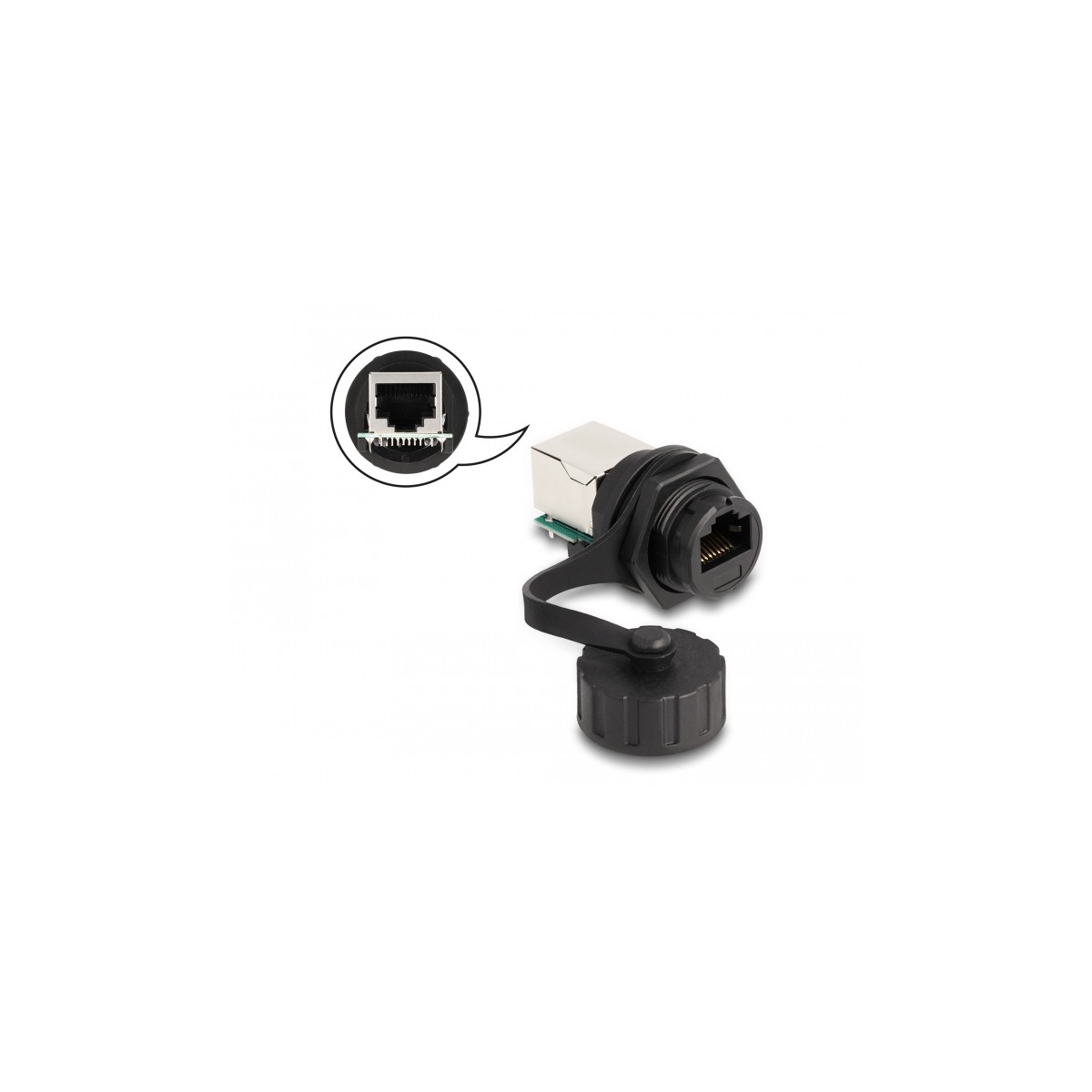 Delock Cable Connector RJ50 jack to RJ50 jack for installation with protective cap IP68 dust and waterproof black