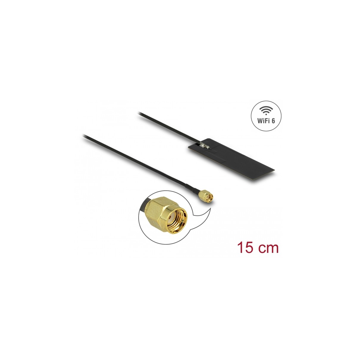Delock WLAN WiFi 6 802.11 ac/ax/a/h/b/g/n Antenna RP-SMA plug 2 - 4 dBi 15 cm PCB internal self-adhesive