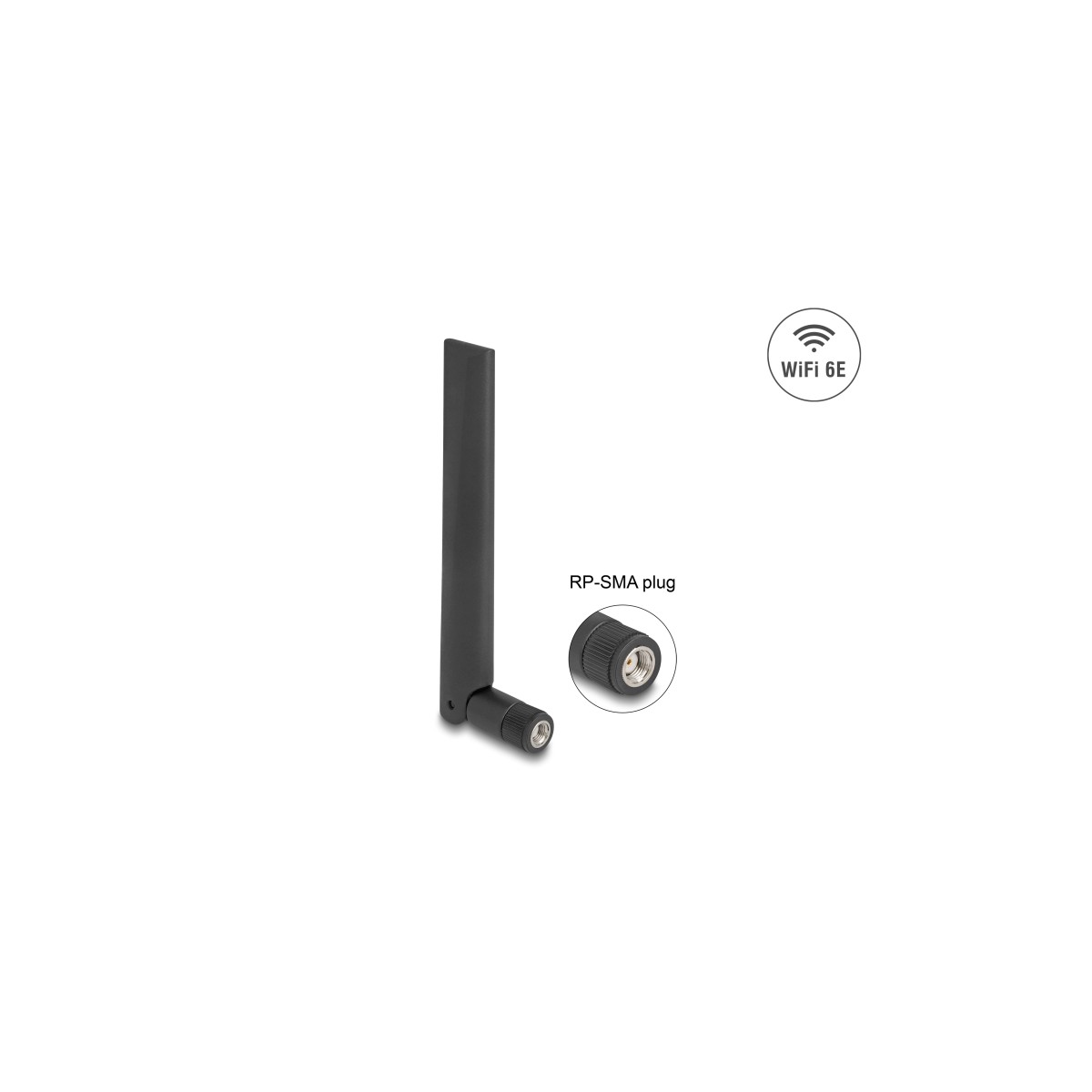 This WiFi 6E antenna by Delock can be connected to a WLAN device with RP-SMA interface, in order to send and receive signals.