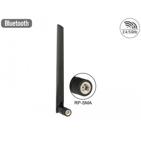 Delock WLAN 802.11 ac/a/h/b/g/n Antenna RP-SMA plug 3 - 5 dBi omnidirectional with tilt joint black