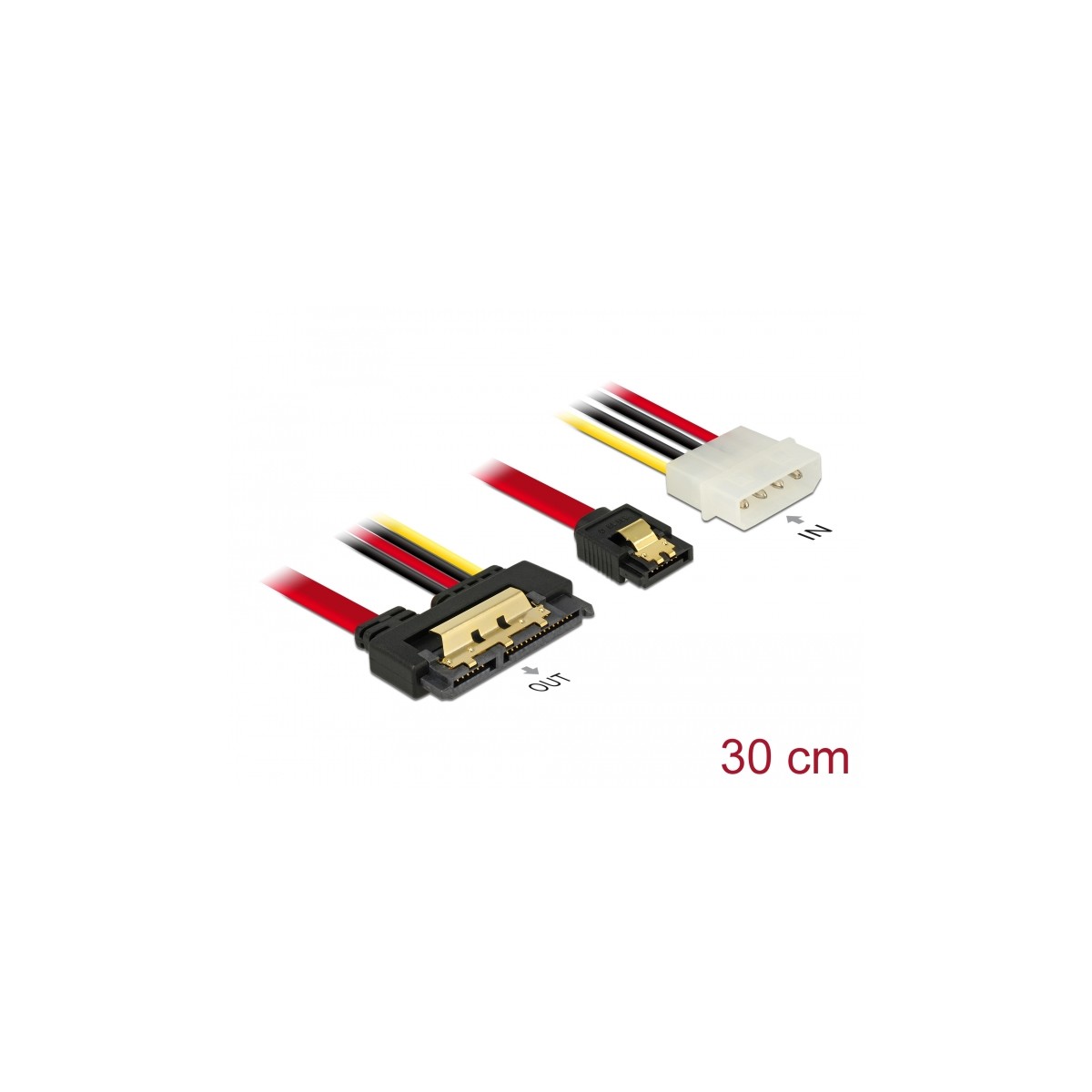 Delock Cable SATA 6 Gb/s 7 pin receptacle + Molex 4 pin power plug > SATA 22 pin receptacle straight metal 30 cm