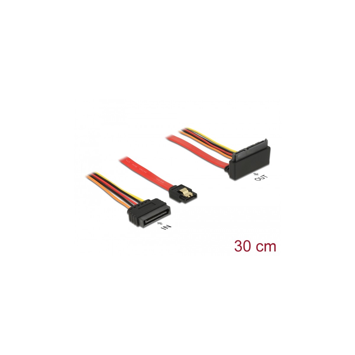 Delock Cable SATA 6 Gb/s 7 pin receptacle + SATA 15 pin power plug > SATA 22 pin receptacle upwards angled metal 30 cm