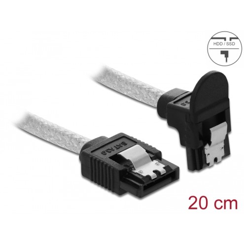 Delock SATA 6 Gb/s Cable straight to downwards angled 20 cm transparent