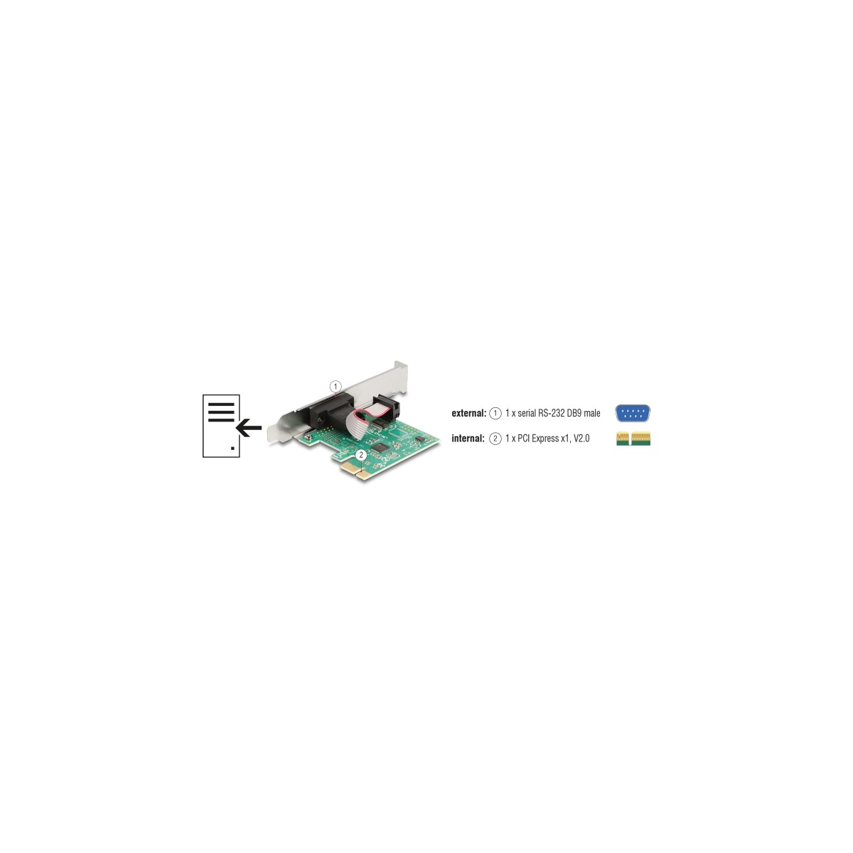 The PCI Express card by Delock expands a PC by one external serial RS-232 port. Devices such as scanners, protocol converters, POS systems, infrared -, IoT - devices etc. and different modes can be used. By using the included low profile brackets, the PCI Express card can be also installed into a Mini-PC.