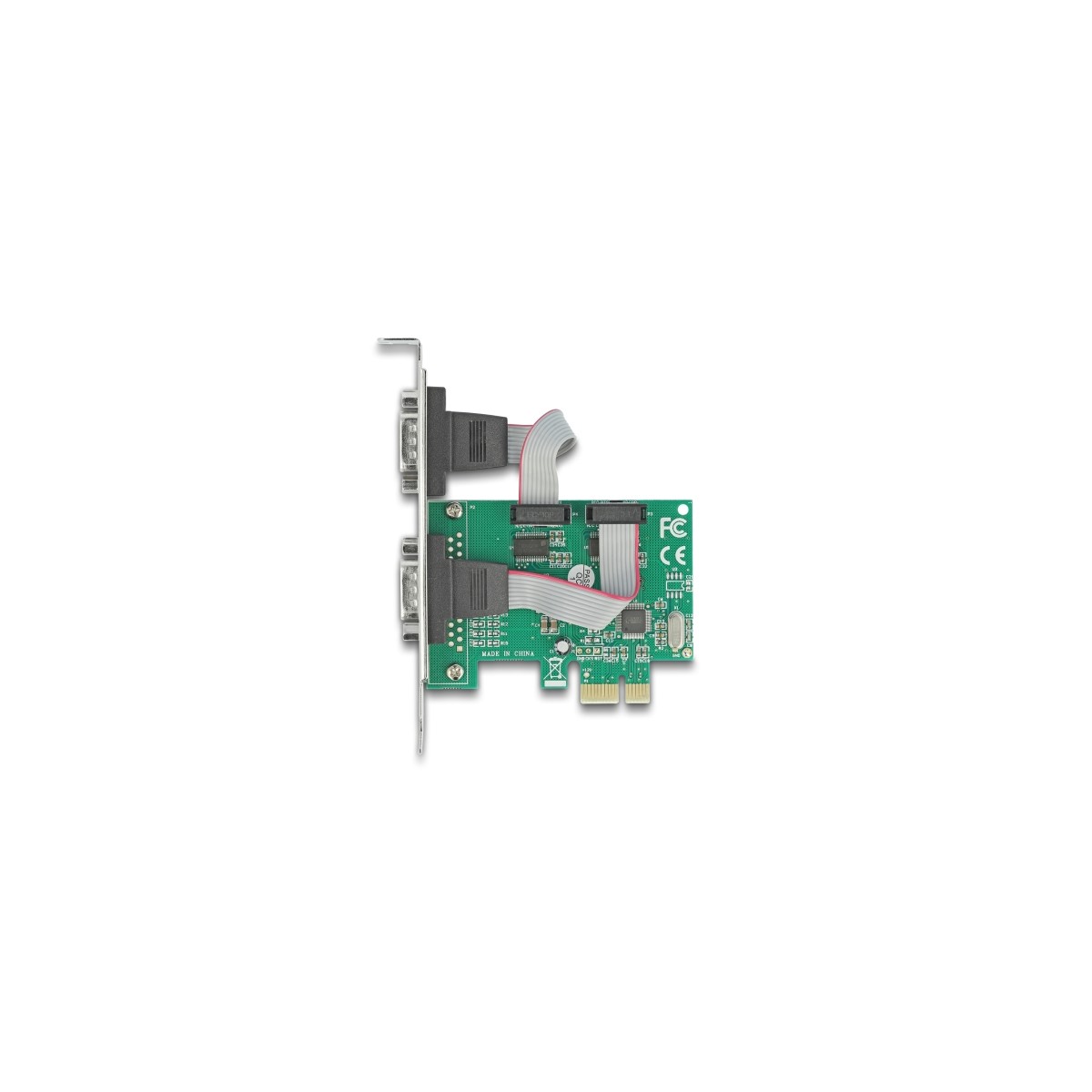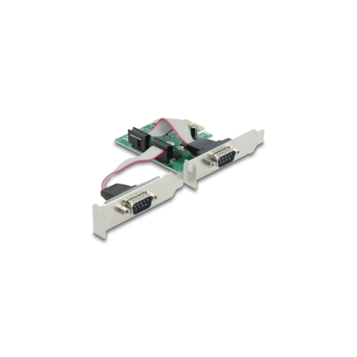 The PCI Express card by Delock expands a PC by two external serial RS-232 ports. Different devices such as scanner, protocol converter, IoT devices etc. can be connected to this card.