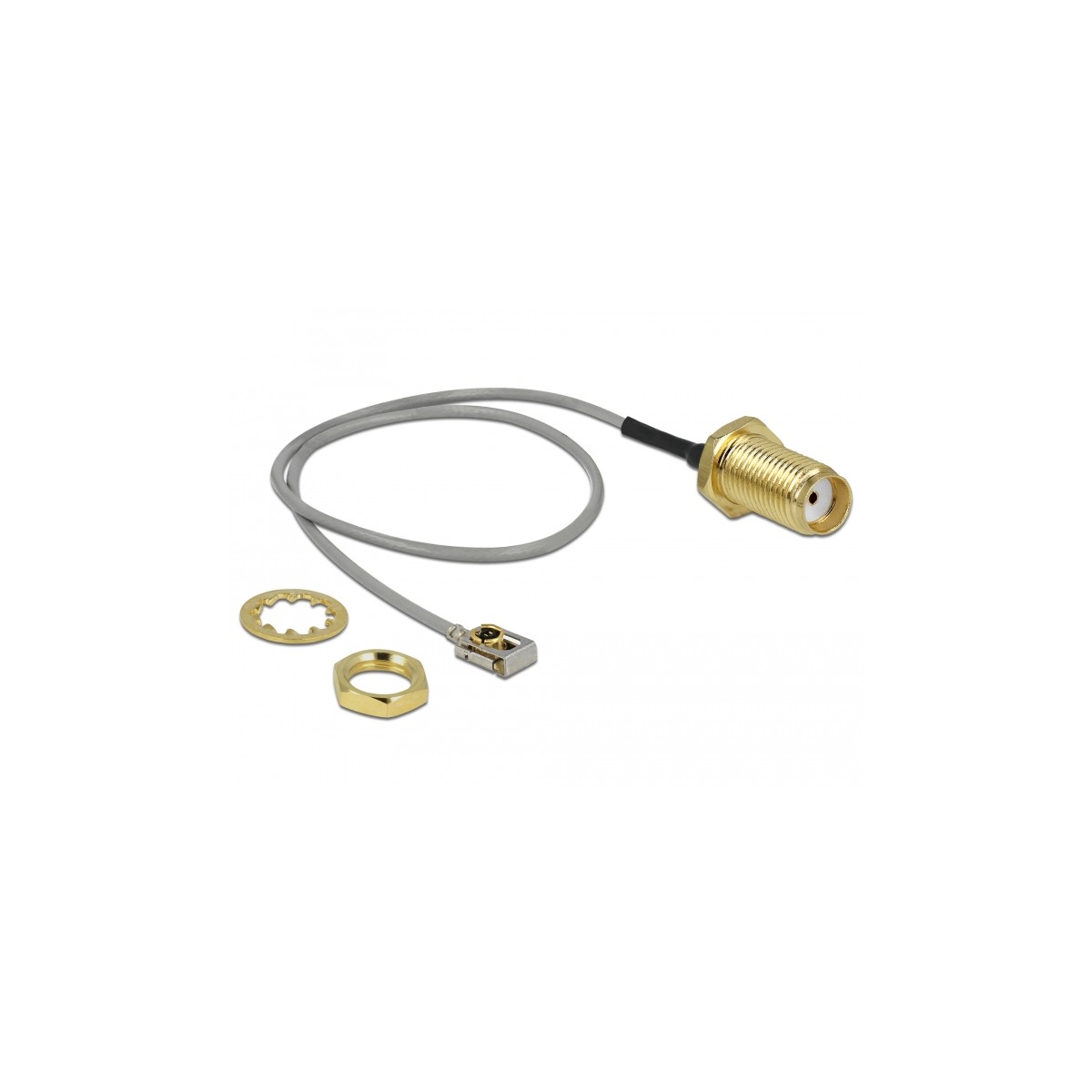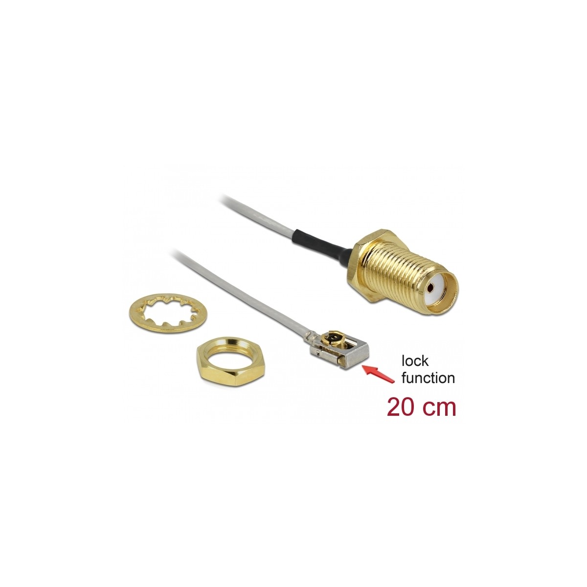 Delock Antenna Cable SMA jack bulkhead to MHF® I LK plug 1.13 20 cm thread length 10 mm