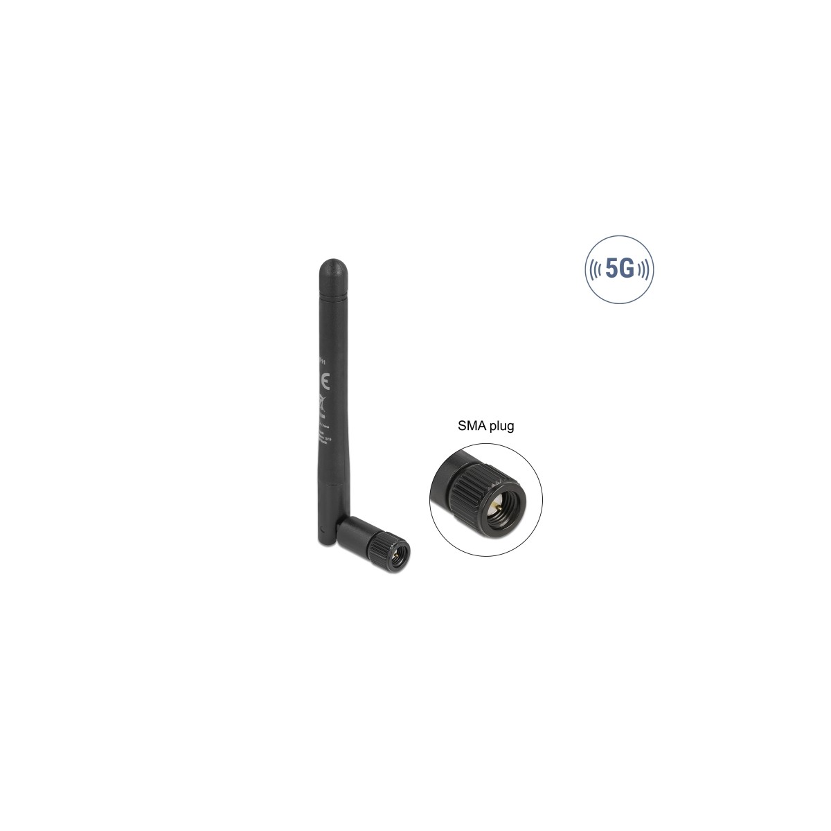 Delock 5G 3.3 - 5.0 GHz Antenna SMA plug -1.0 - 4.5 dBi 10.9 cm omnidirectional with tilt joint and flexible material black