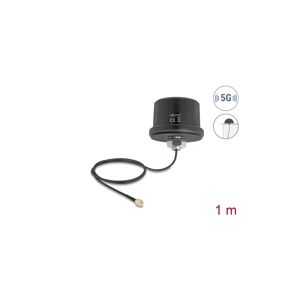 Delock 5G LTE GNSS WiFi 6 Antenna SMA plug 1.9 - 3.3 dBi omnidirectional with connection cable ULA100 1 m roof mounting outdoor