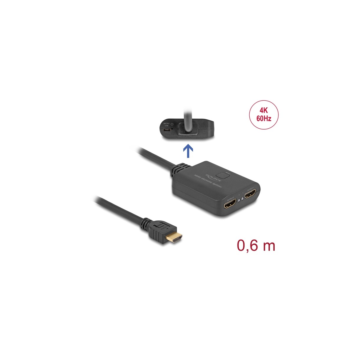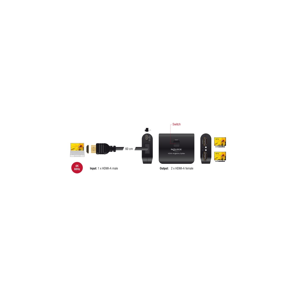 Delock HDMI Splitter 1 x HDMI in to 2 x HDMI out 4K 60 Hz with downscaler