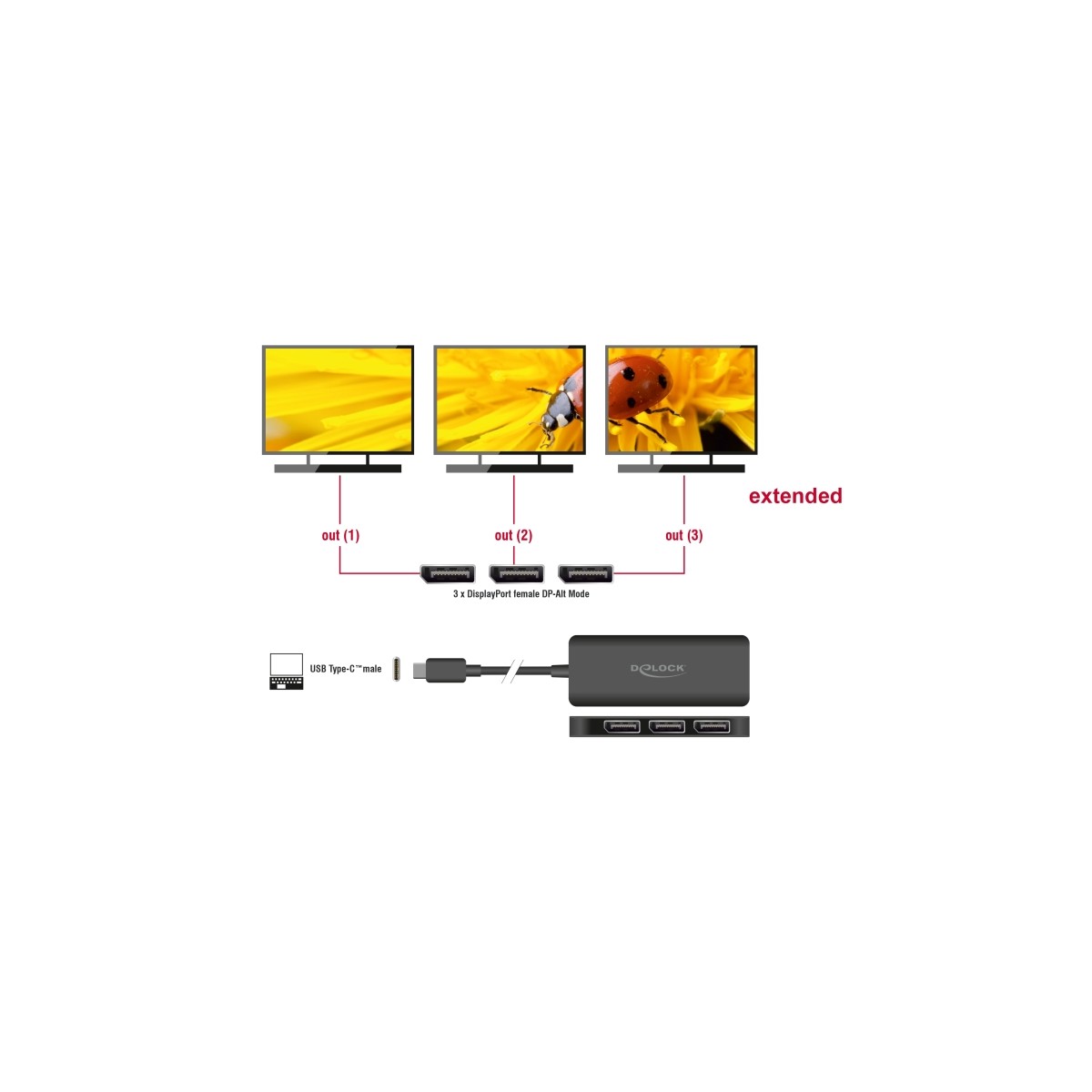 Delock USB Type-C™ Splitter (DP Alt Mode) to 3 x DisplayPort MST 4K 60 Hz