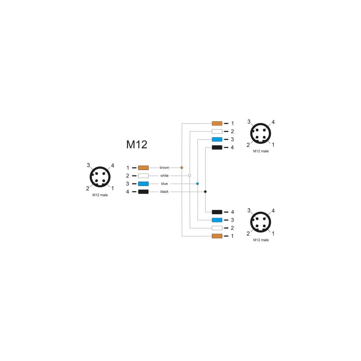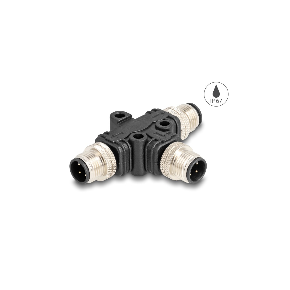 Delock M12 T-Splitter A-coded 4 pin male to 2 x male parallel connection