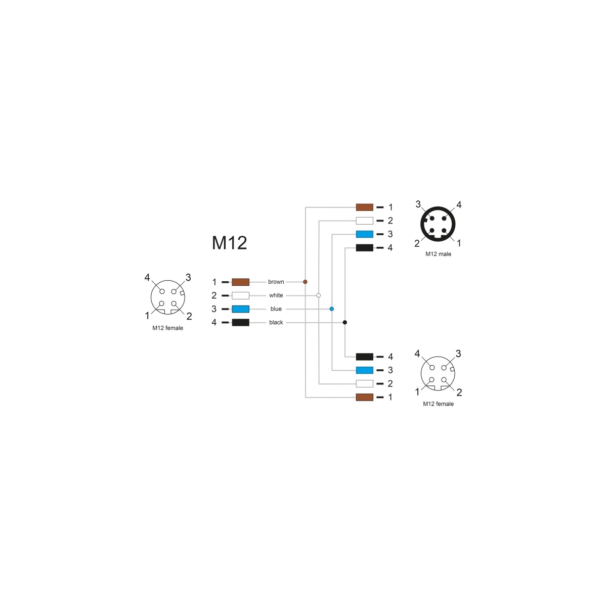 1 x M12 A-coded 4 pin male + 1 x M12 A-coded 4 pin female