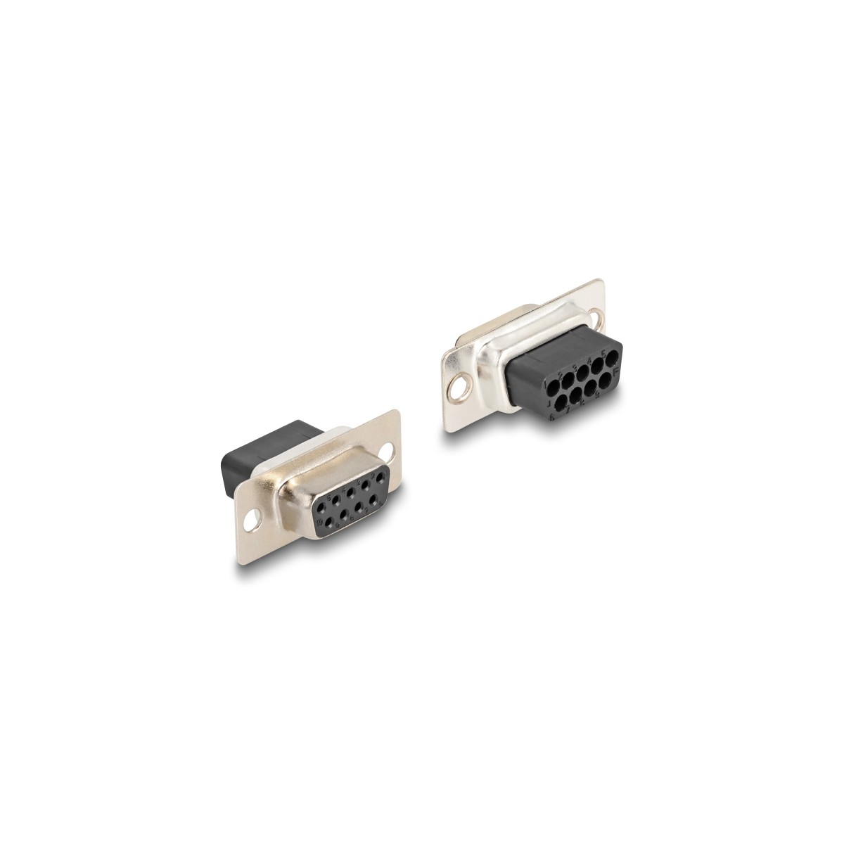 This adapter by Delock can be used to expand a serial interface by using an optional Cat.5 / 5e / 6 cable. Thereby one can set the pin assignment individually. Just plug the cable end into the desired hole of the connector and let it lock into the housing.