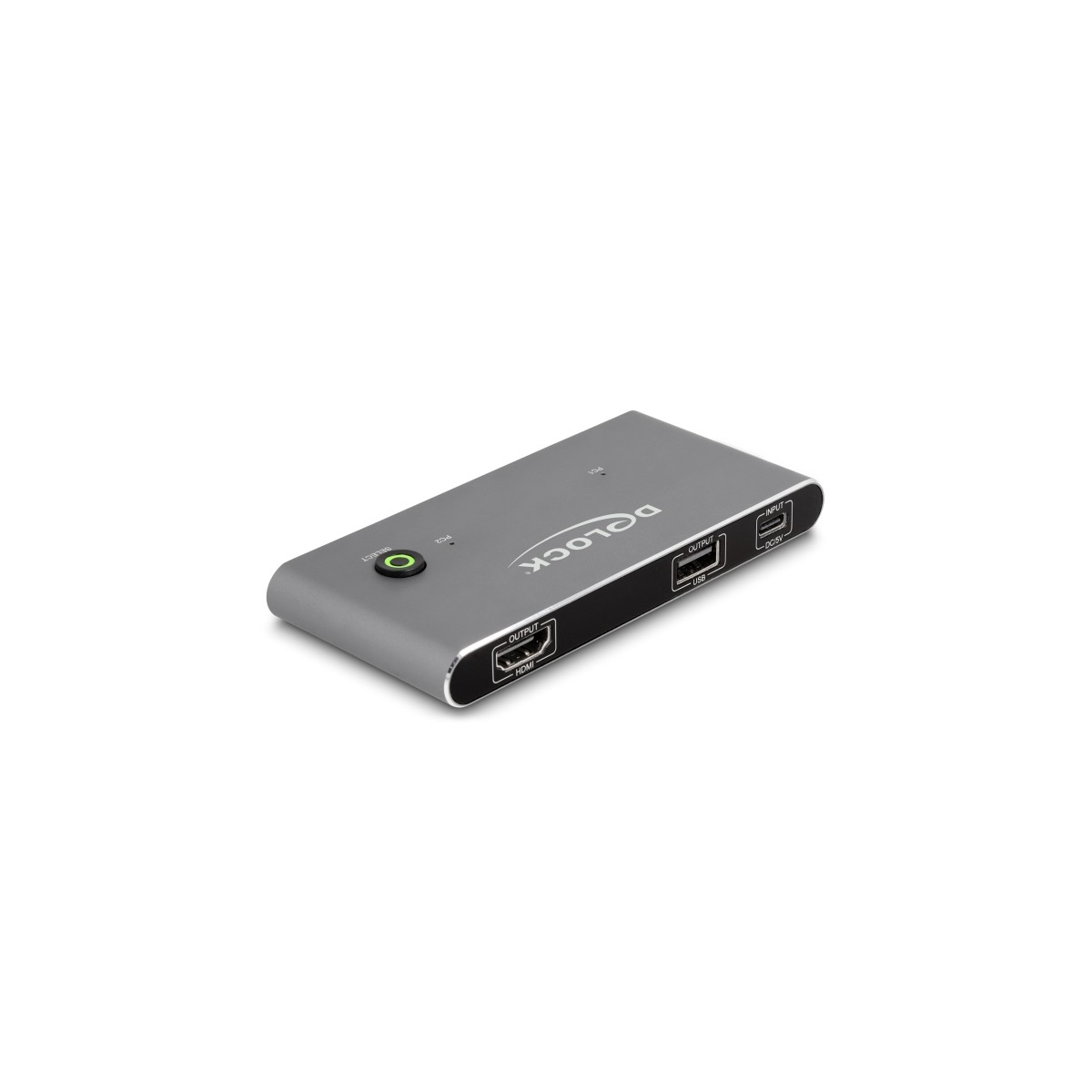 This KVM switch by Delock is a convenient solution for connecting two computers with USB-C™ DP Alt Mode output to an HDMI monitor. By using the button you can switch between both computers.