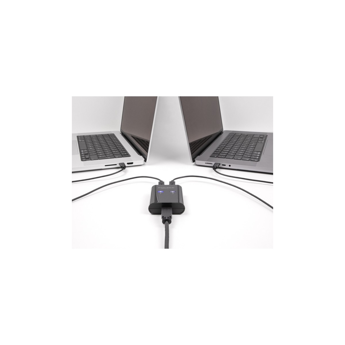 This USB switch by Delock allows to share a single USB 2.0 peripheral device with two different computer systems. This avoids the cost of purchasing multiple peripherals or the hassle of swapping cables from one system to another.