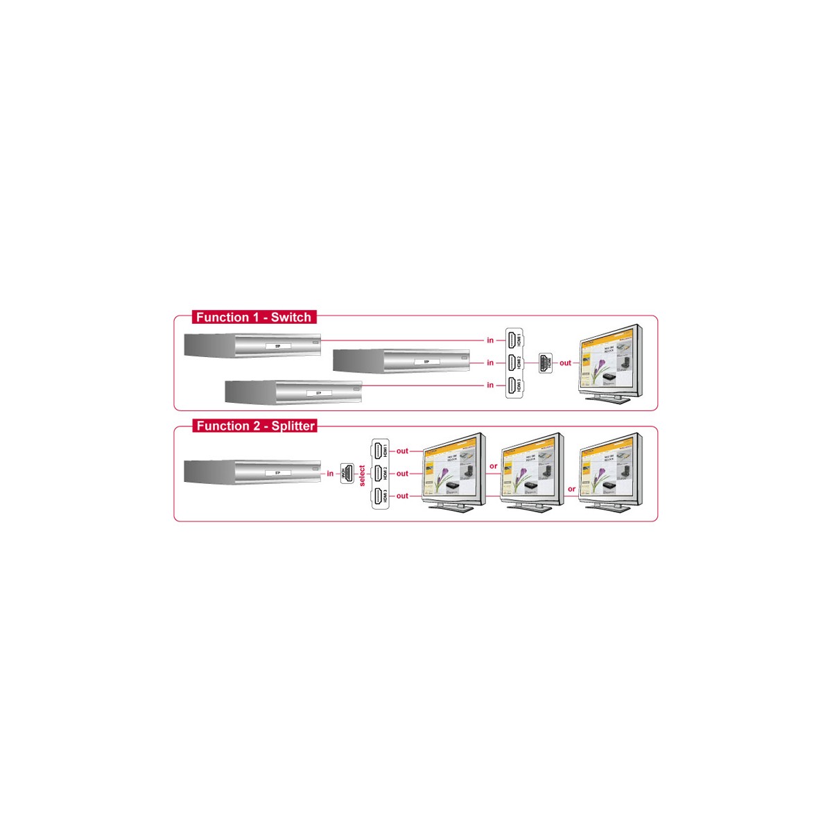 This HDMI switch by Delock is a manual bidirectional switch for connecting different devices with HDMI port. This switch offers two different applications.