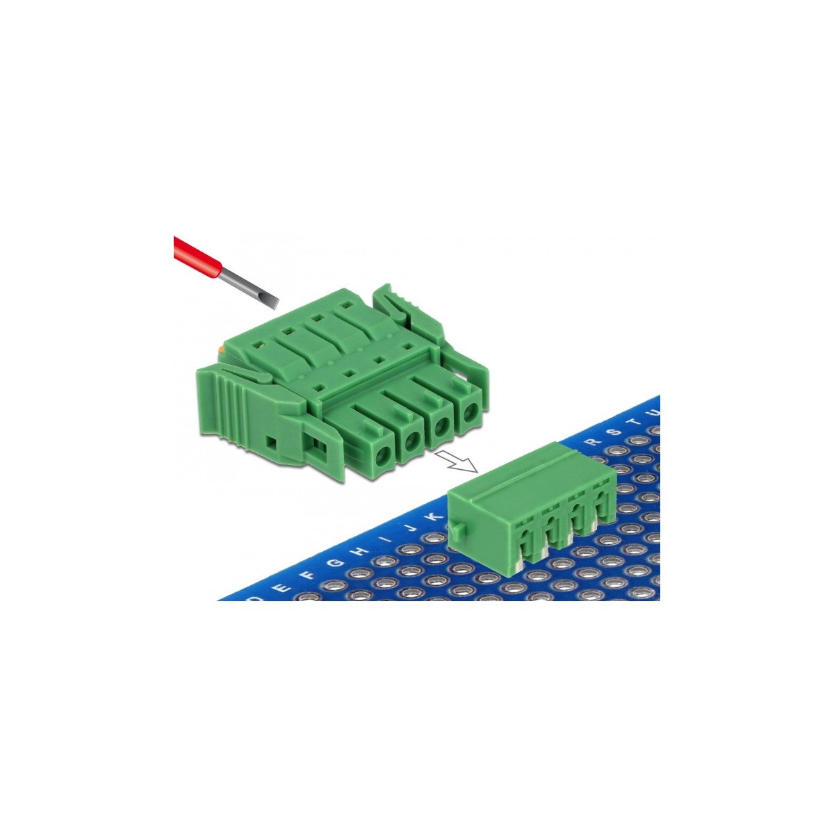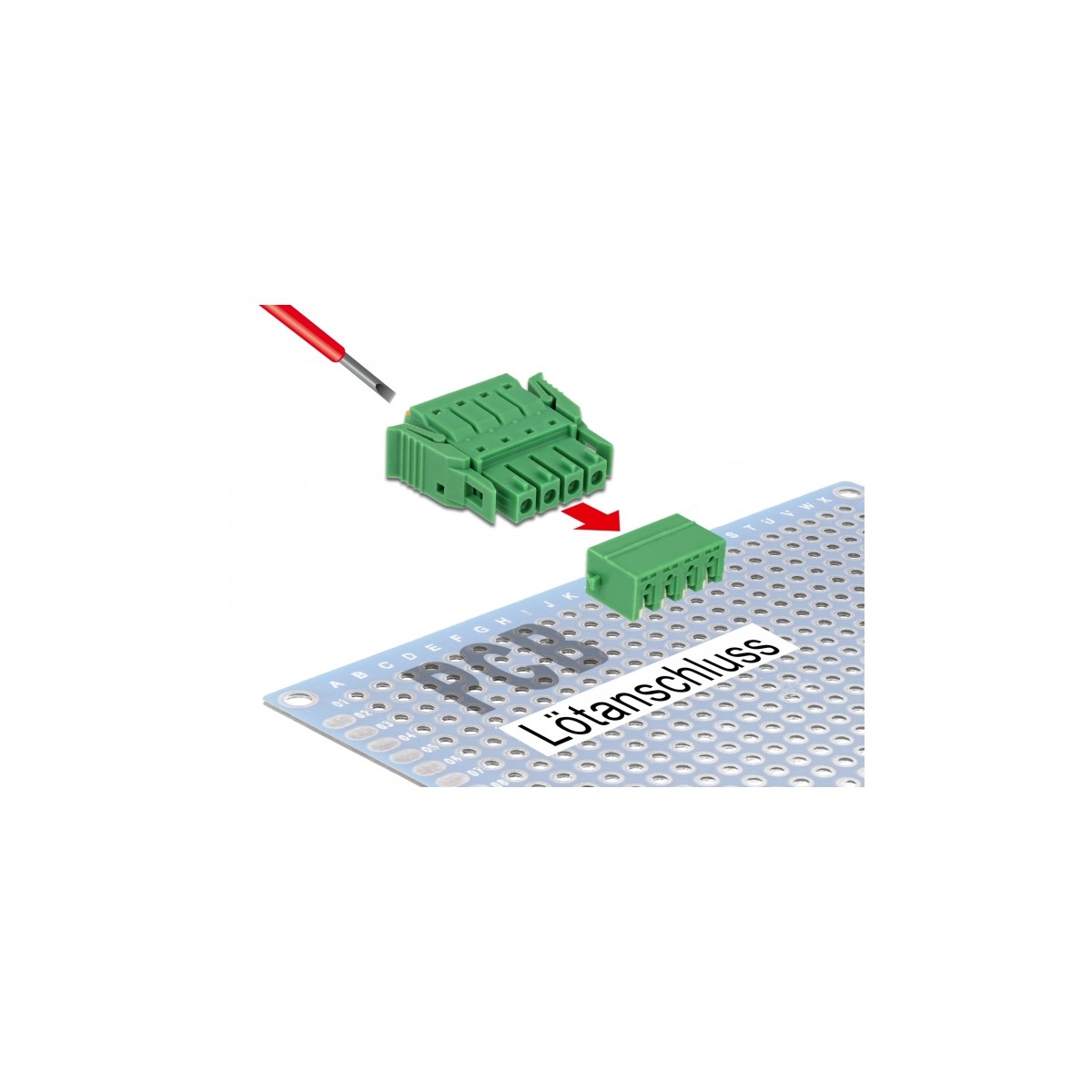 This terminal block set by Delock will be soldered on a PCB, to create a detachable connection between two components.