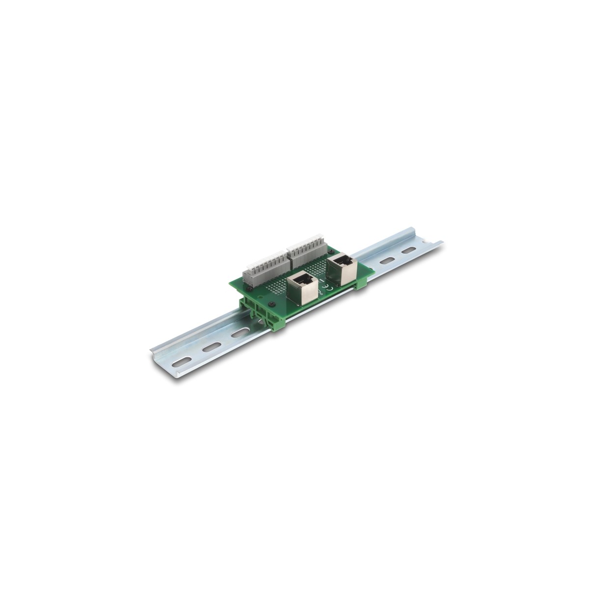 Delock RJ45 2 x female to 2 x Terminal Block with push-button for DIN rail angled