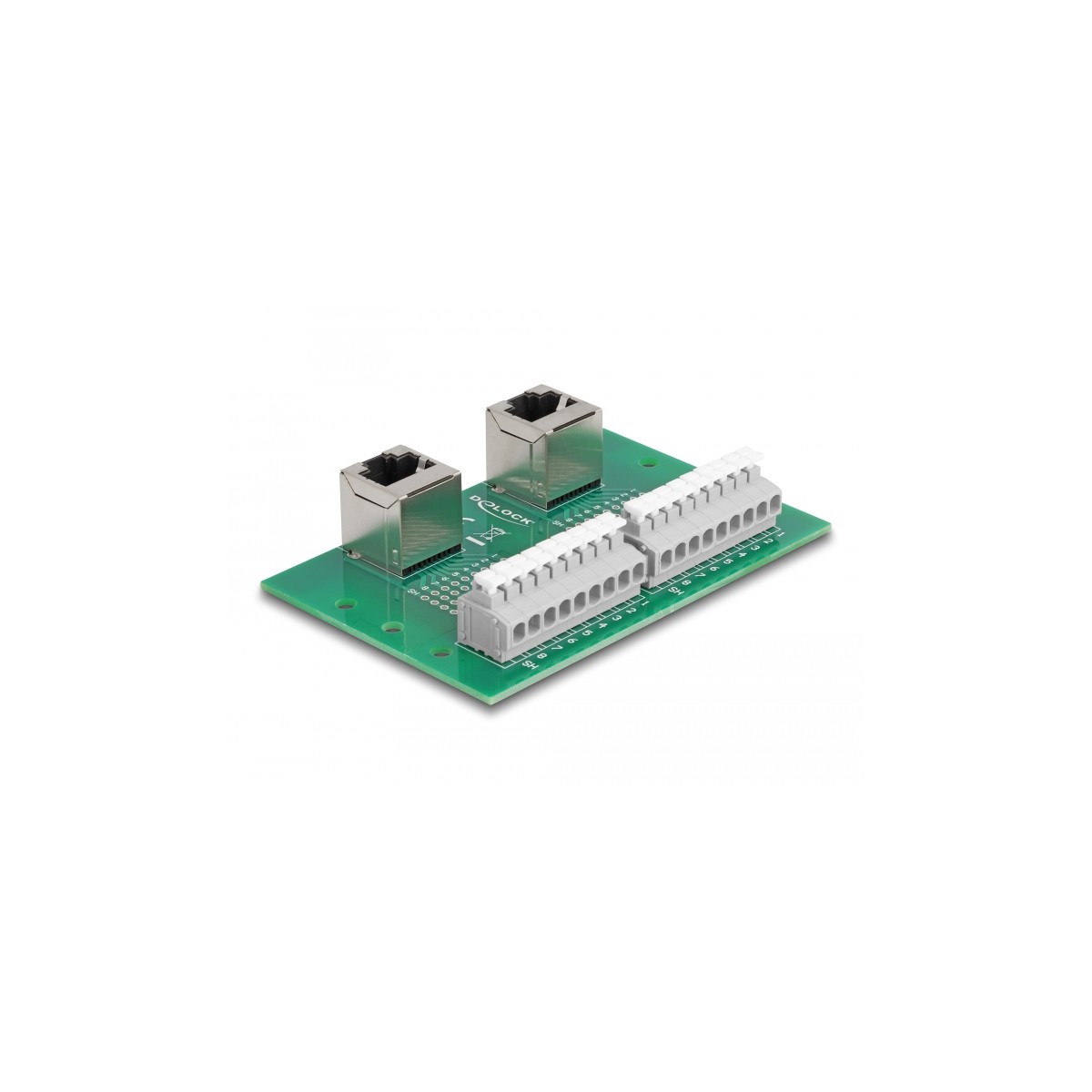 This adapter by Delock can be used to connect various network devices. Strands with stripped ends can be connected via the terminal block toolfree.