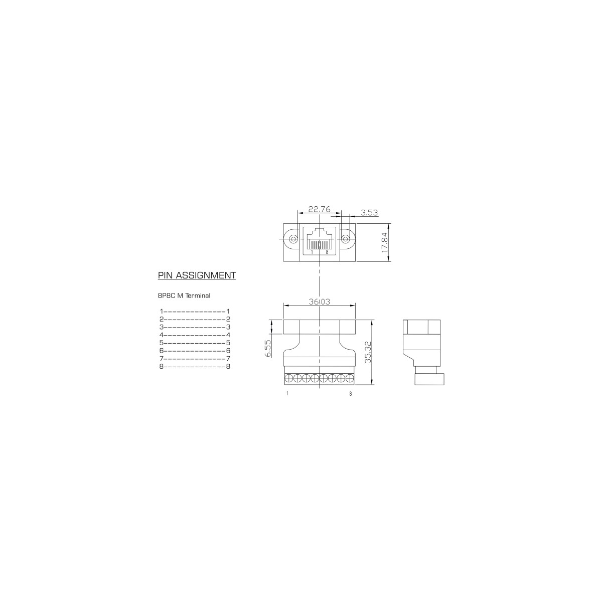 1 x 8 pin terminal block