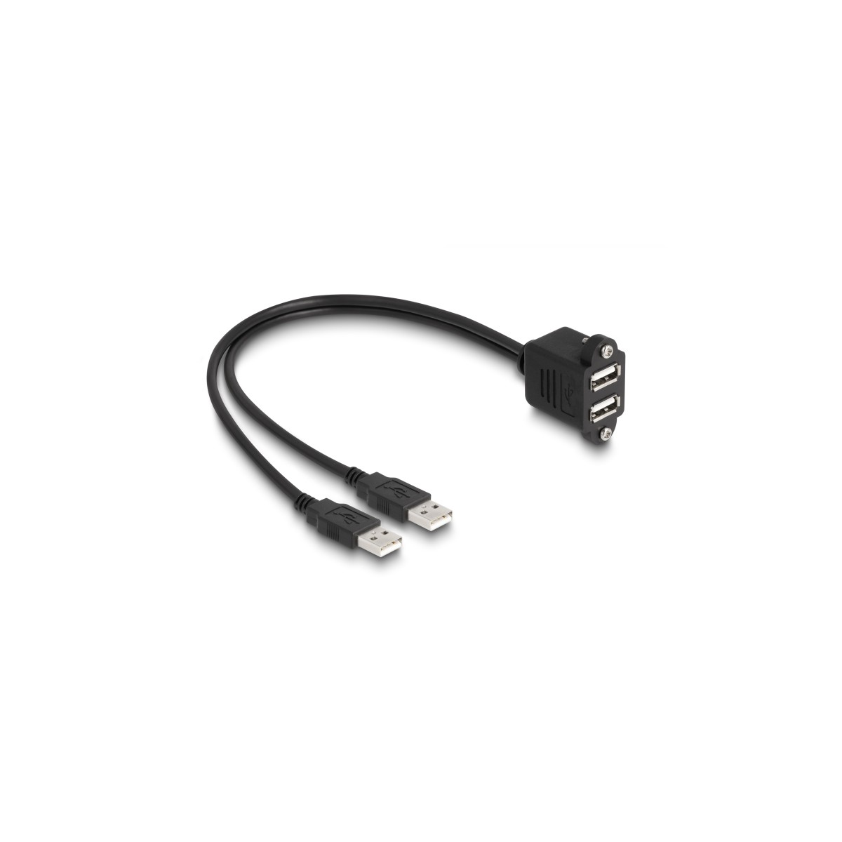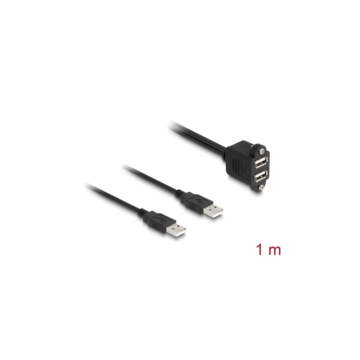 Delock USB 2.0 Cable 2 x USB Type-A male to 2 x USB Type-A female with screws for built-in 1 m black