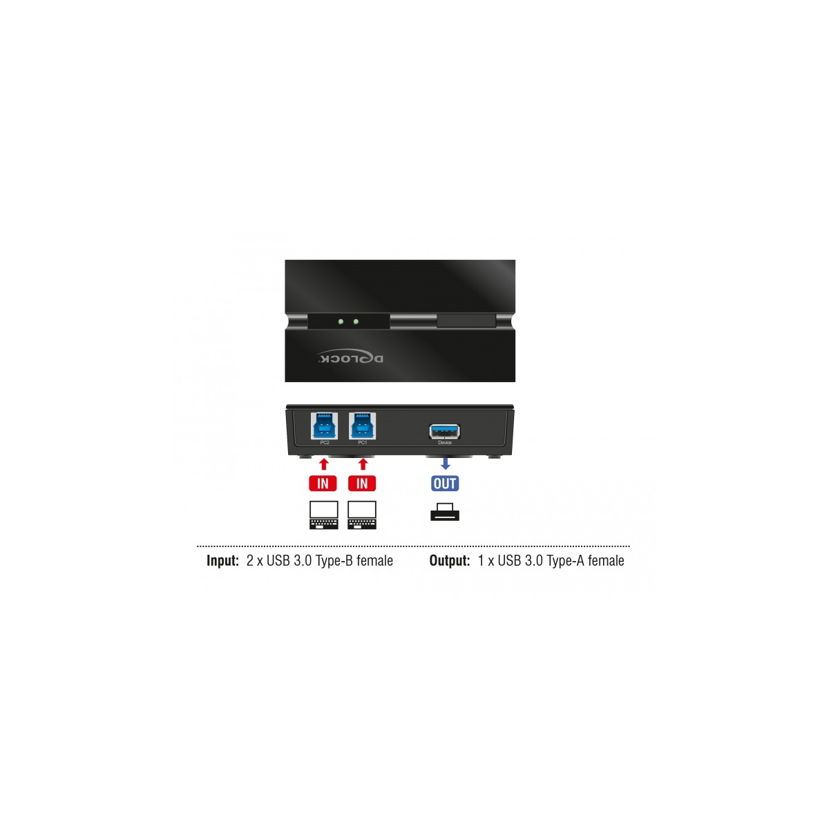 This USB switch by Delock allows to share a single USB 3.0 peripheral device with two different computer systems. This avoids the cost of purchasing multiple peripherals or the hassle of swapping cables from one system to another.